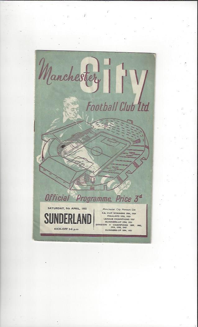 1954/55 Manchester City v Sunderland Football Programme