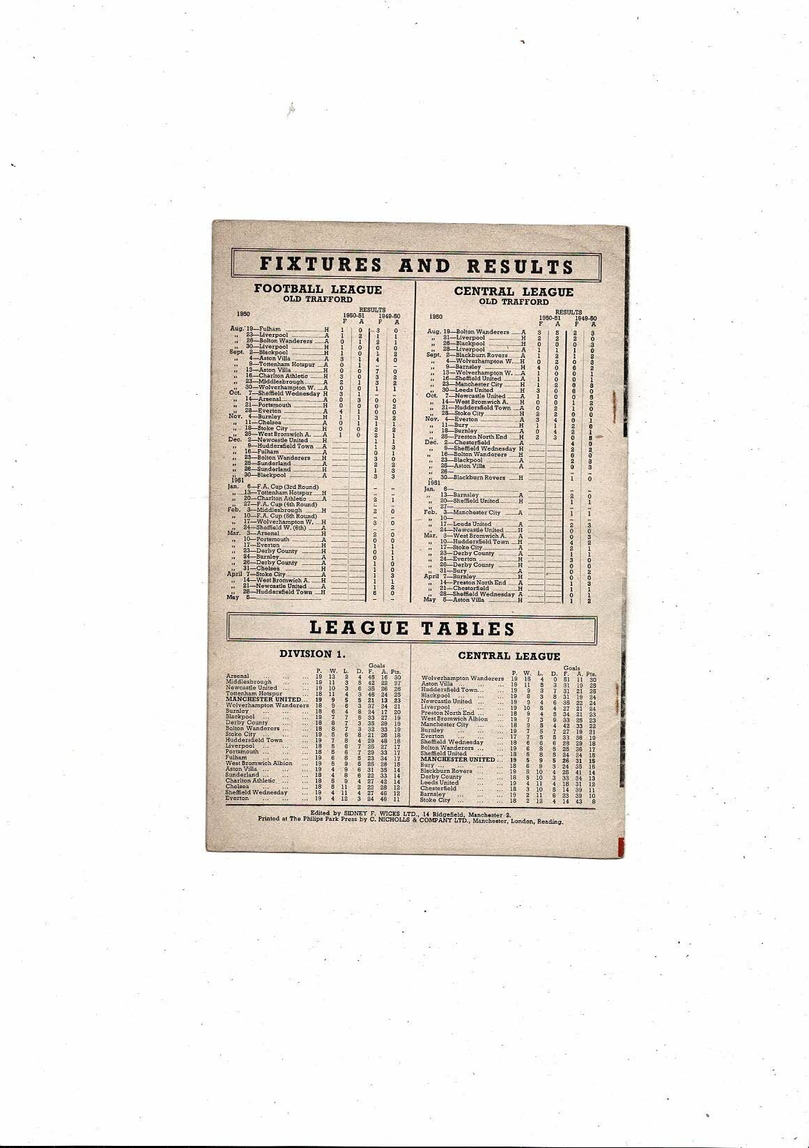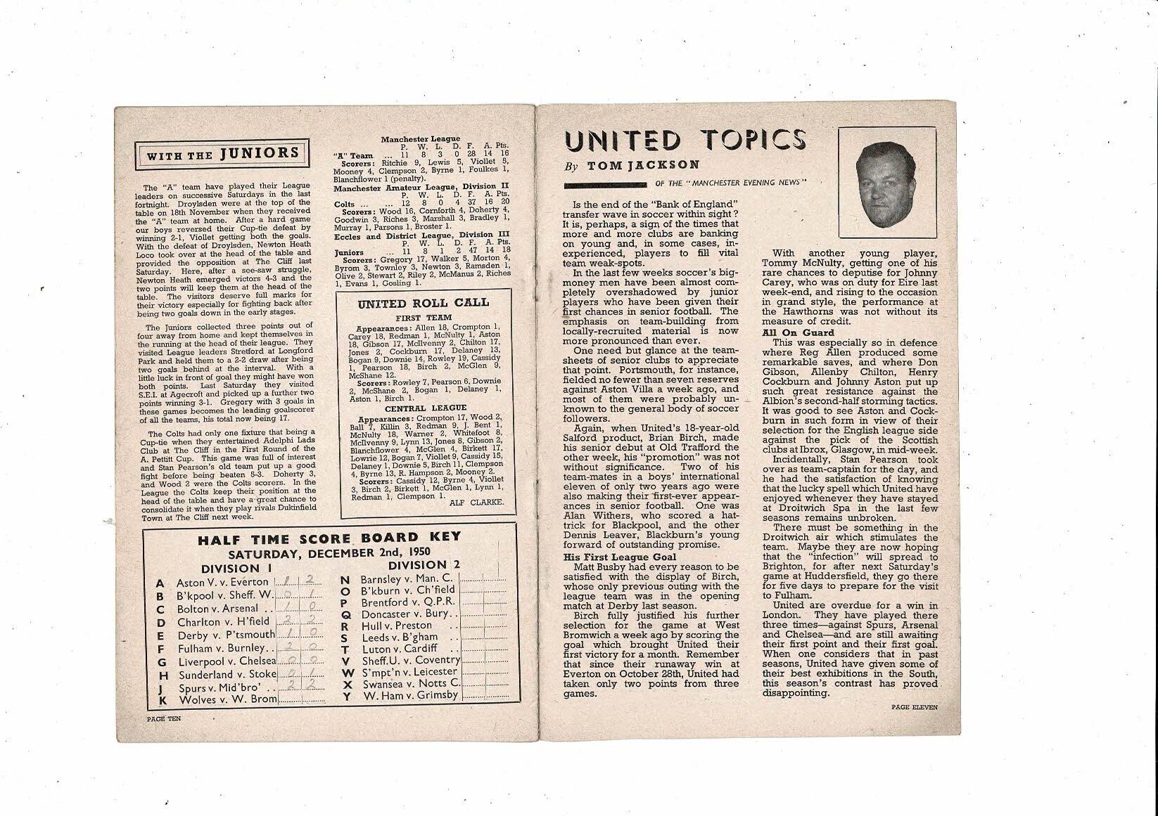1950/51 Manchester United v Newcastle United Football Programme