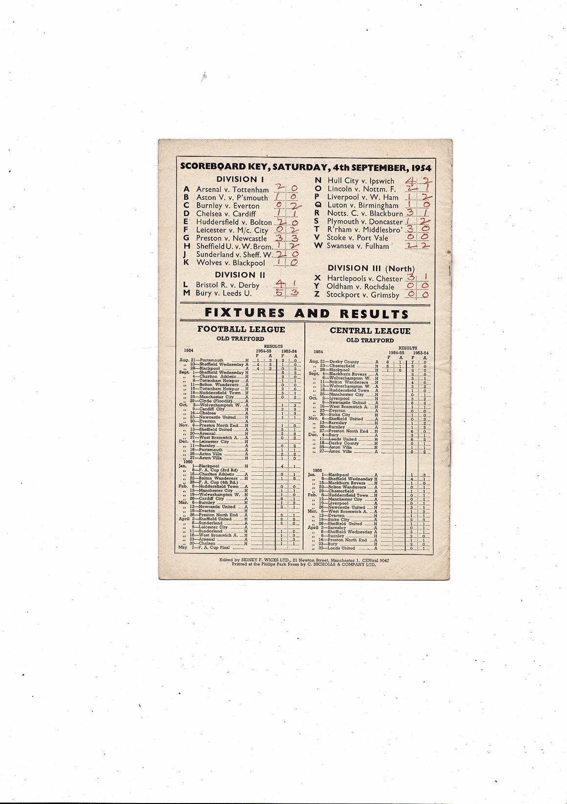 1954/55 Manchester United v Charlton Athletic Football Programme