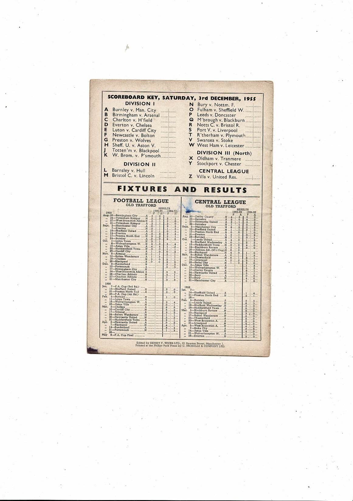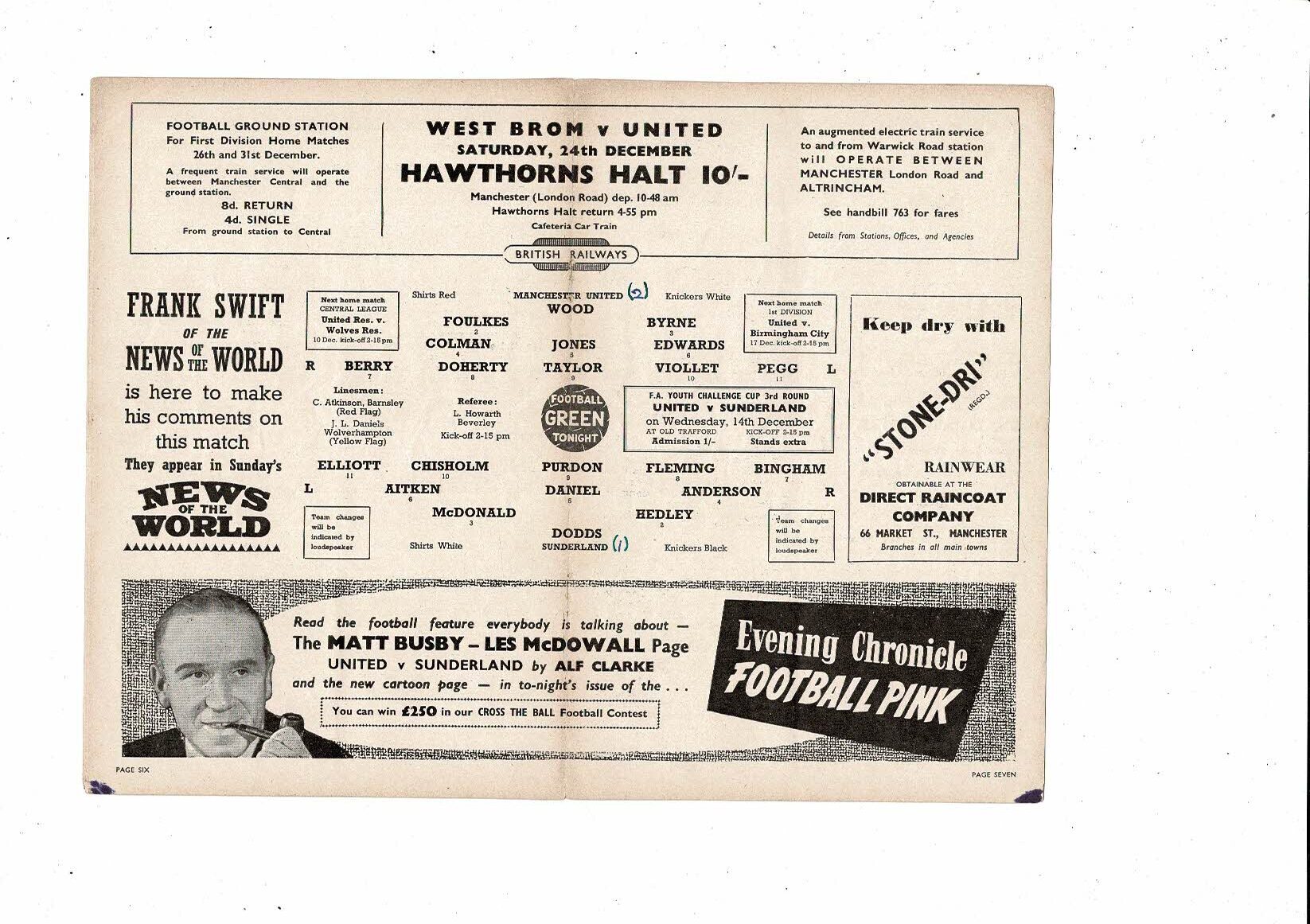 1955/56 Manchester United v Sunderland Football Programme