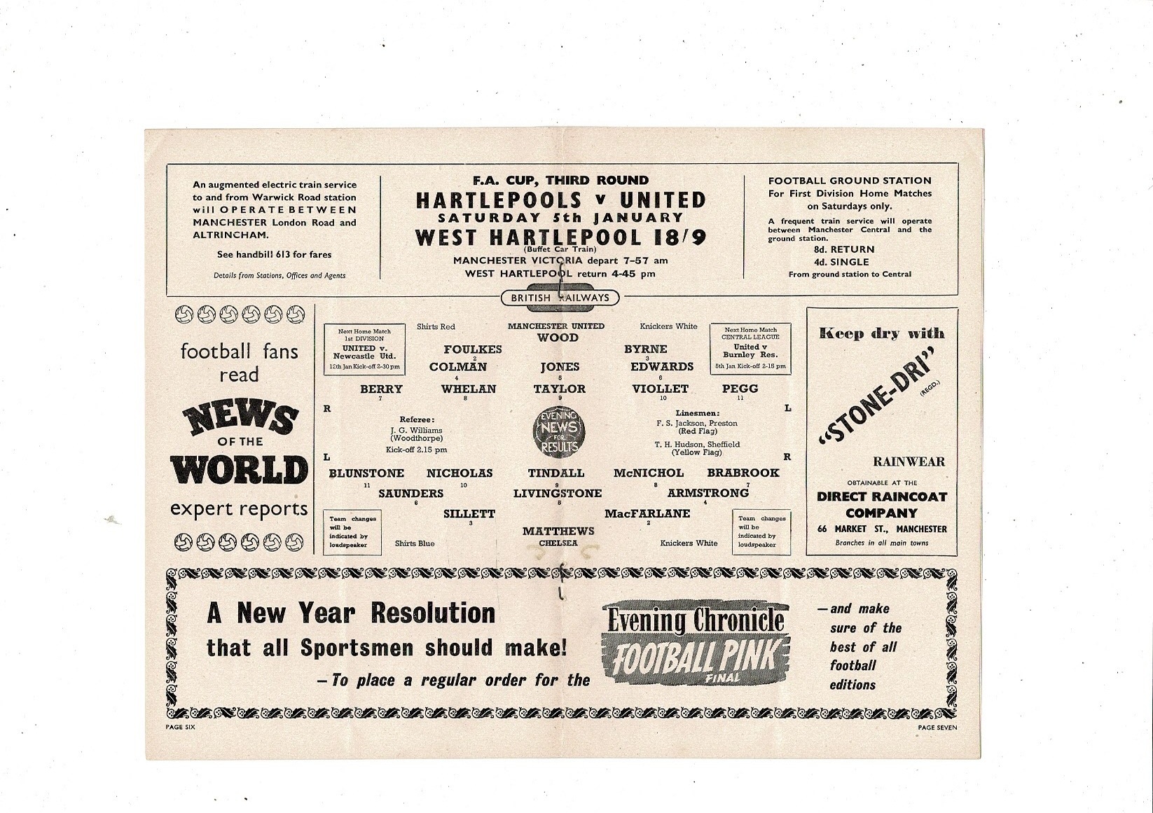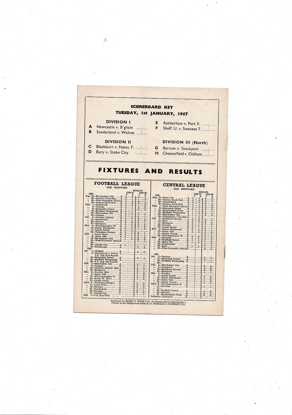 1956/57 Manchester United v Chelsea Football Programme