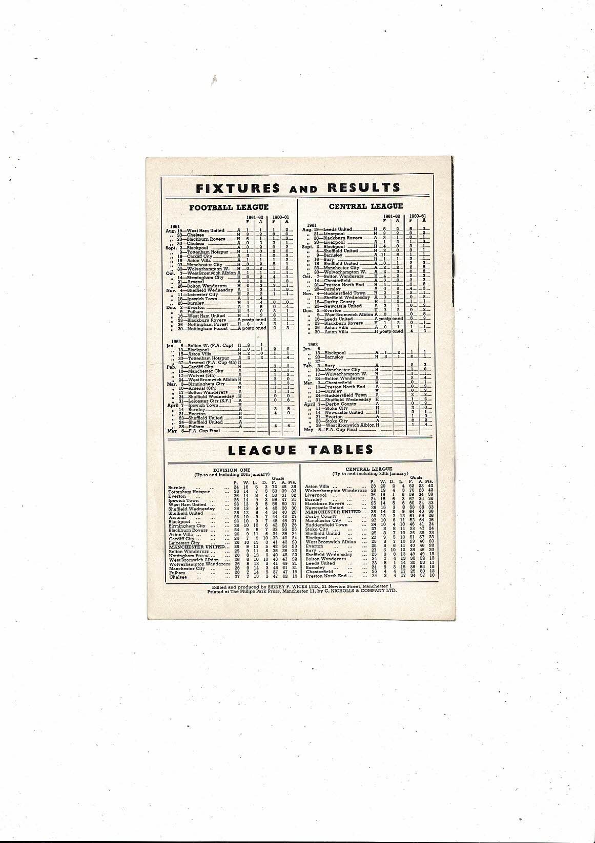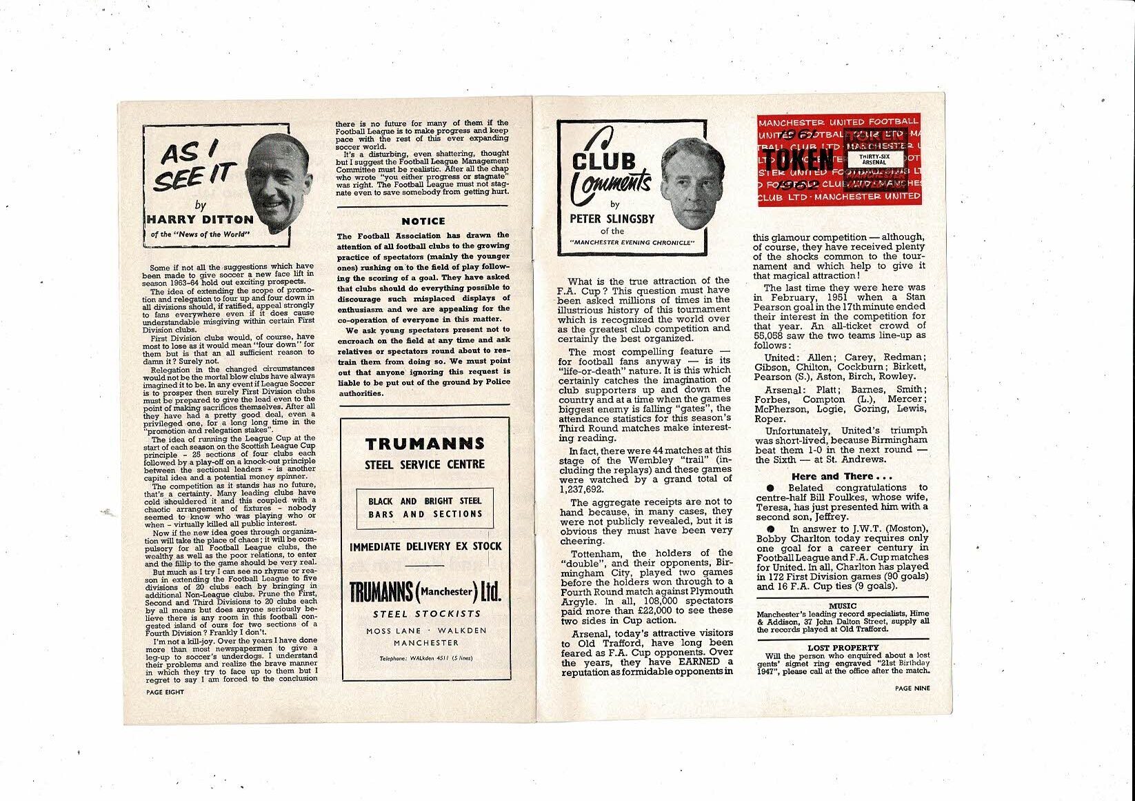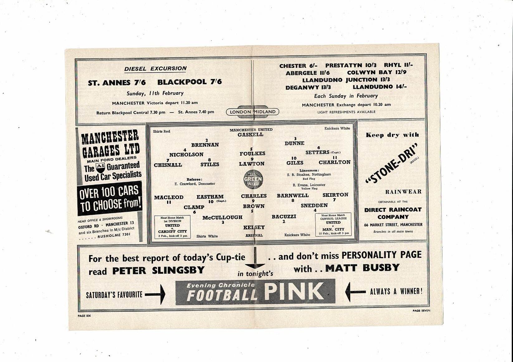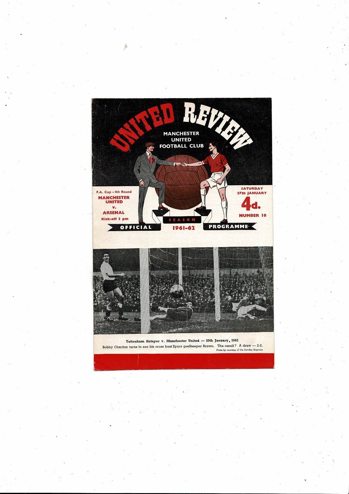 1961/62 Manchester United v Arsenal FA Cup Football Programme 27th Jan