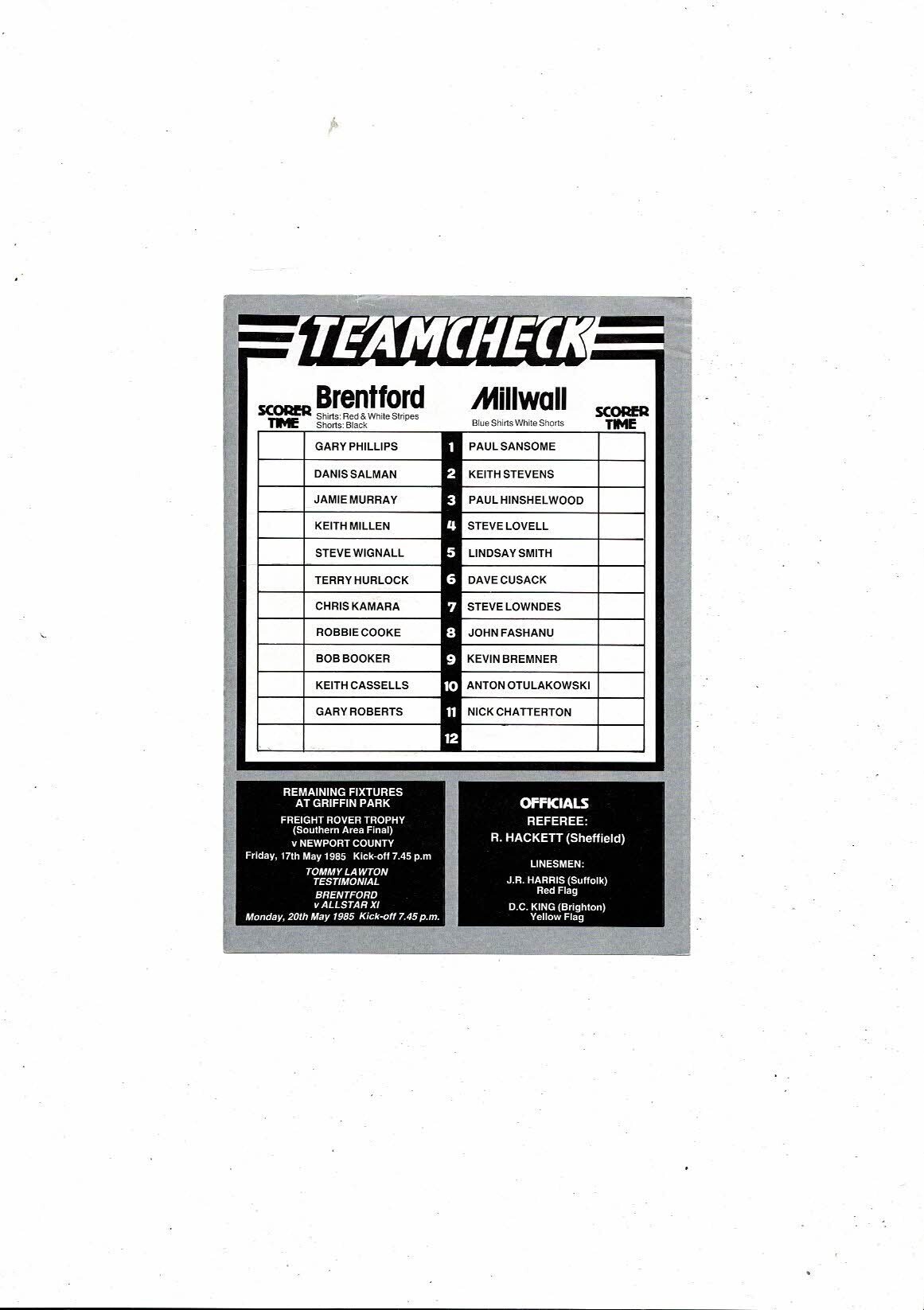 1984/85 Brentford v Millwall Football Programme + Supplement