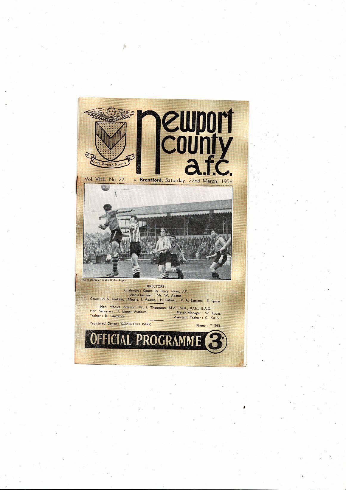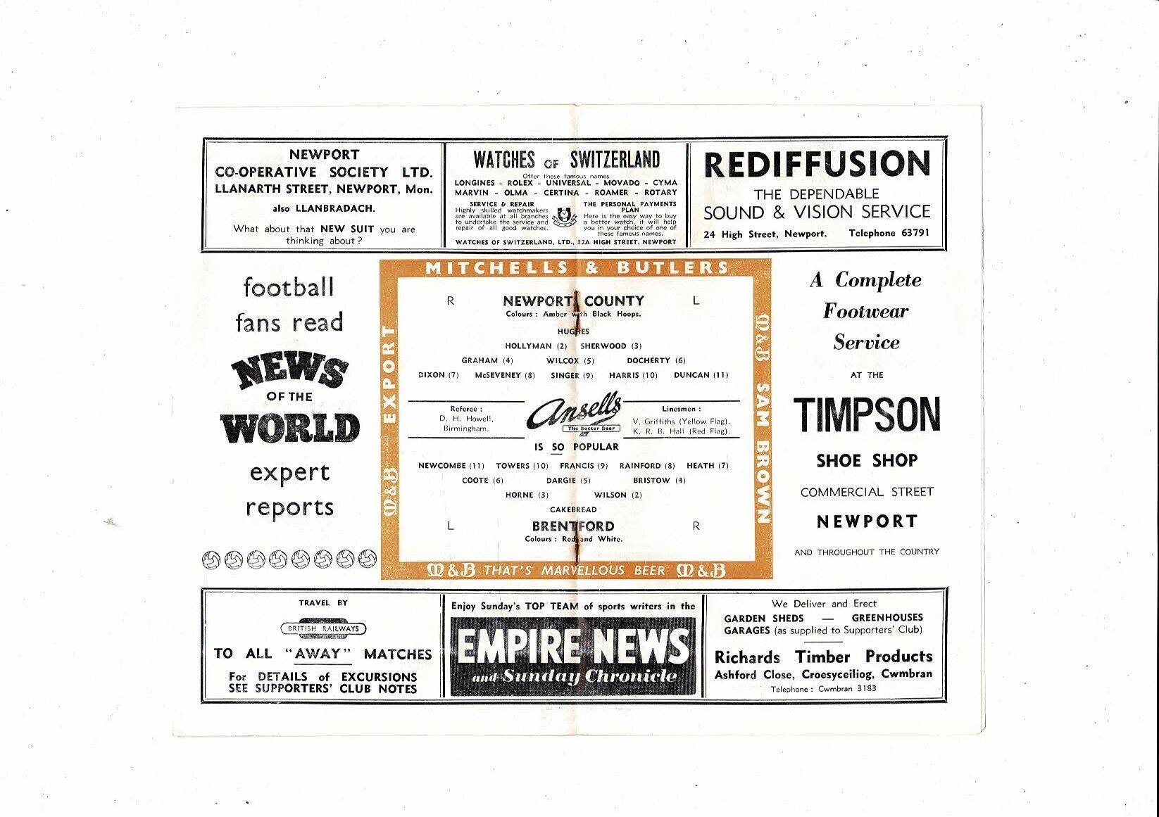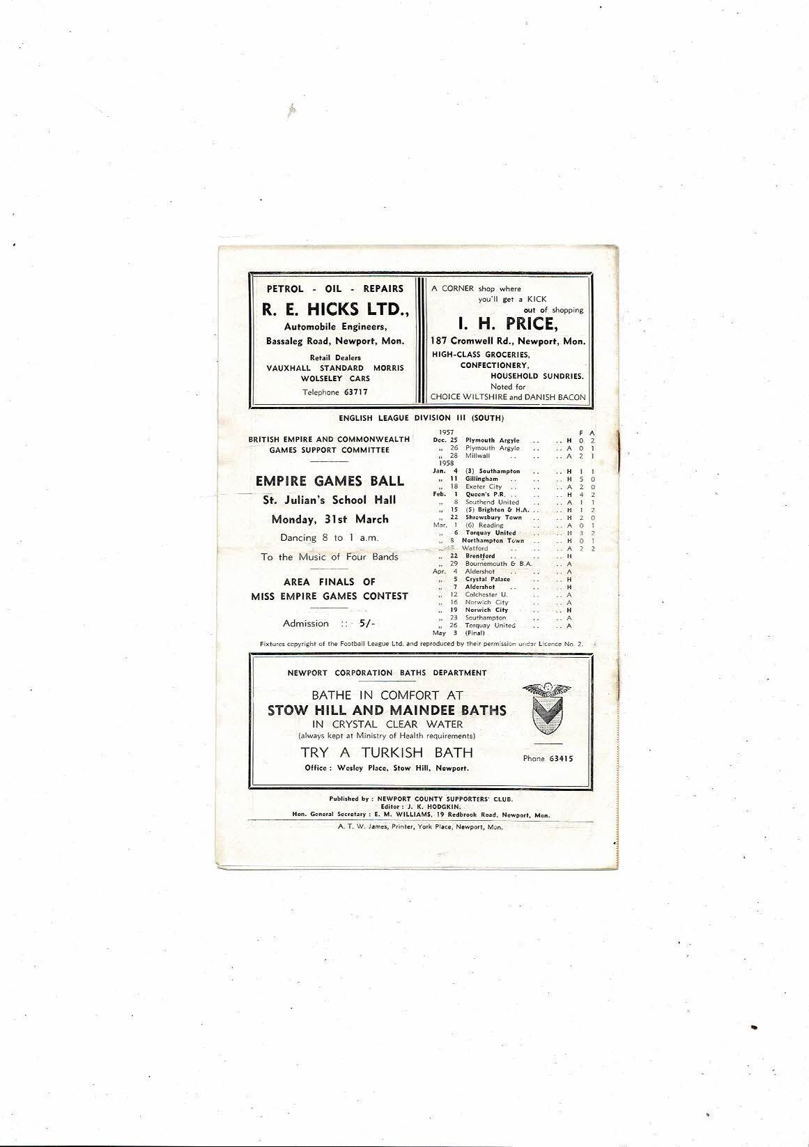 1957/58 Newport County v Brentford Football Programme