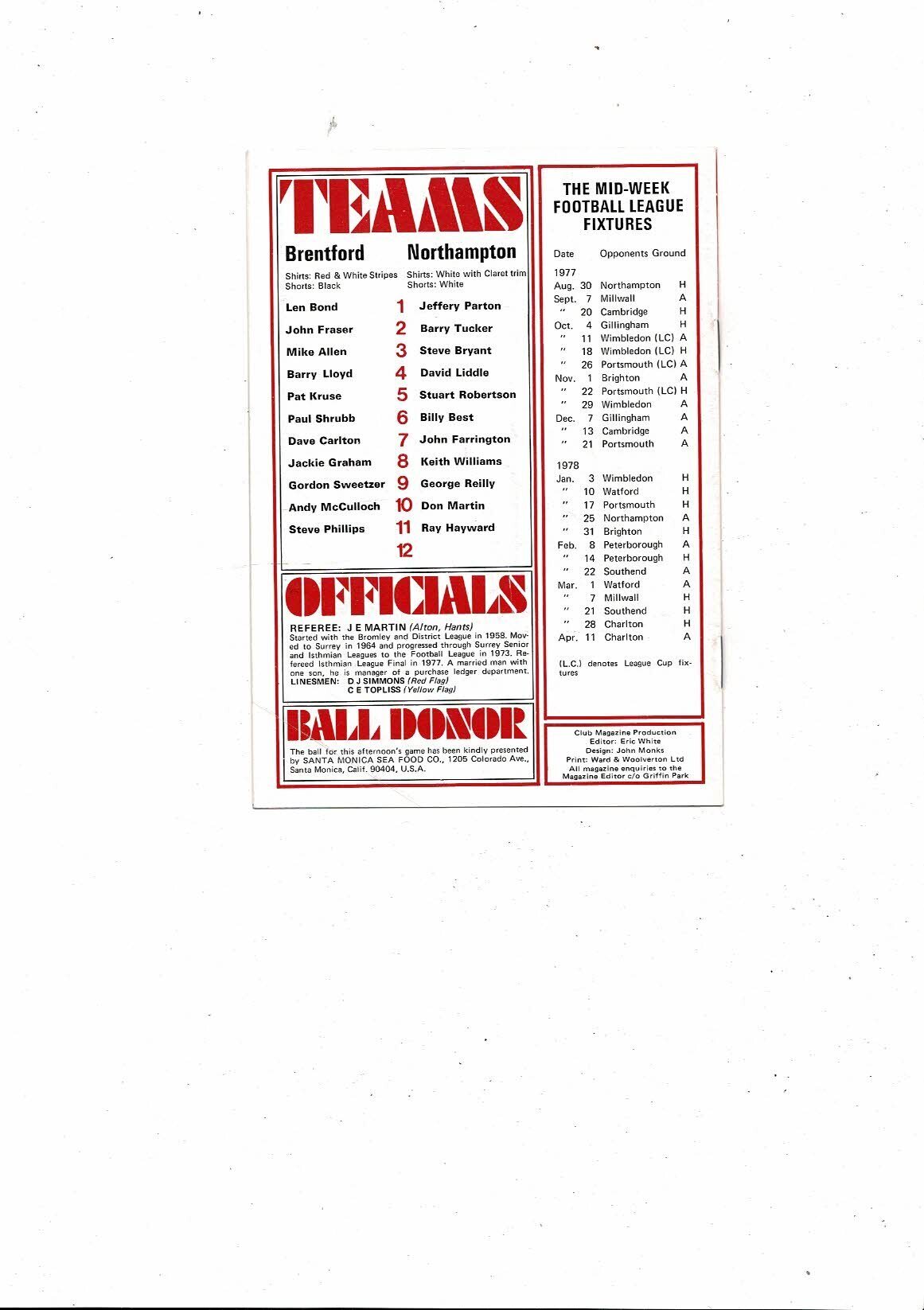 1977/78 Brentford v Northampton Town Football Programme
