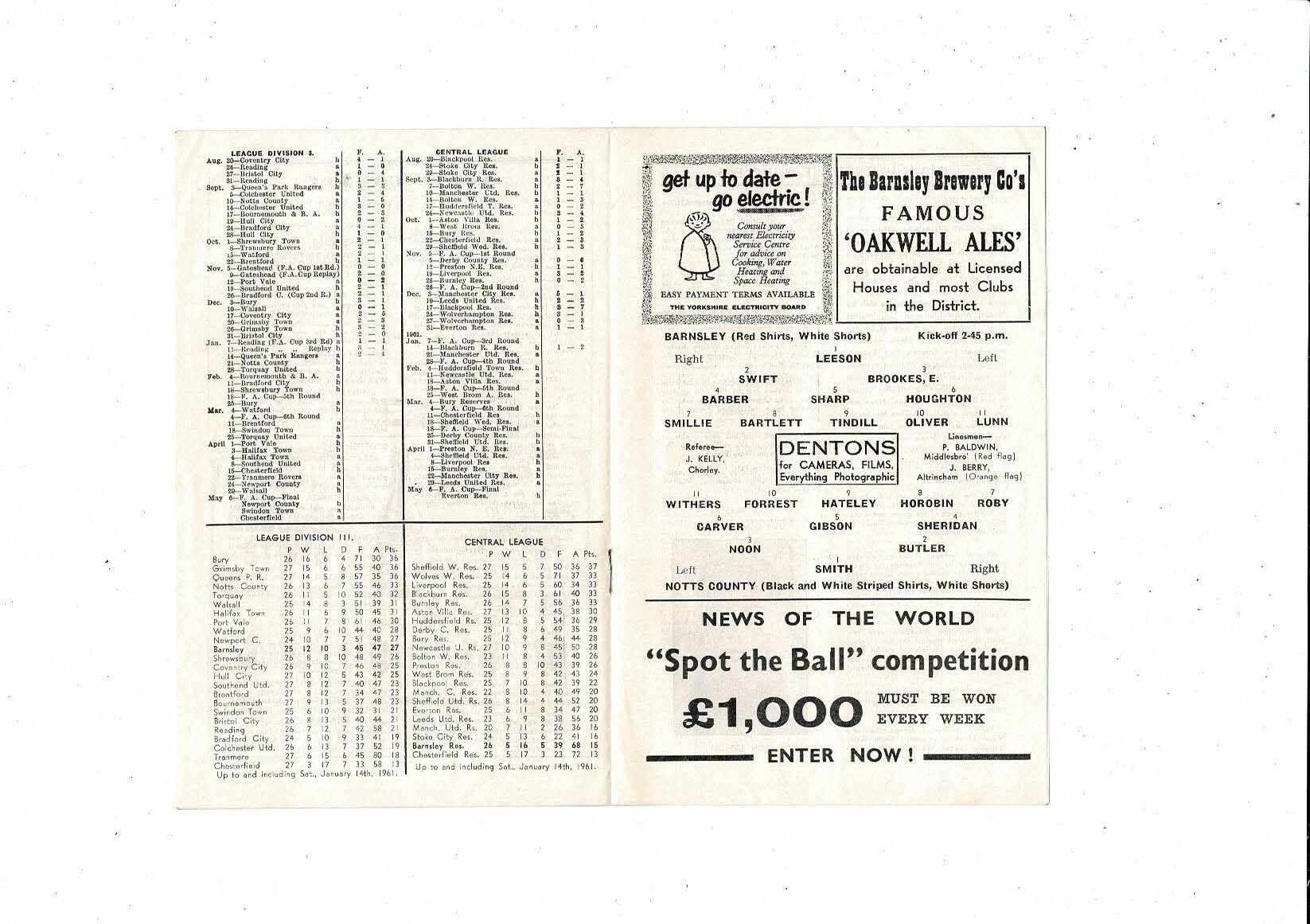 1960/61 Barnsley v Notts County Football Programme