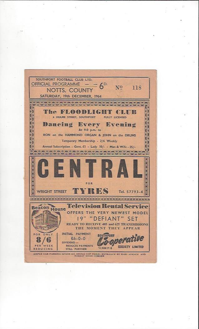 1964/65 Southport v Notts County Football Programme