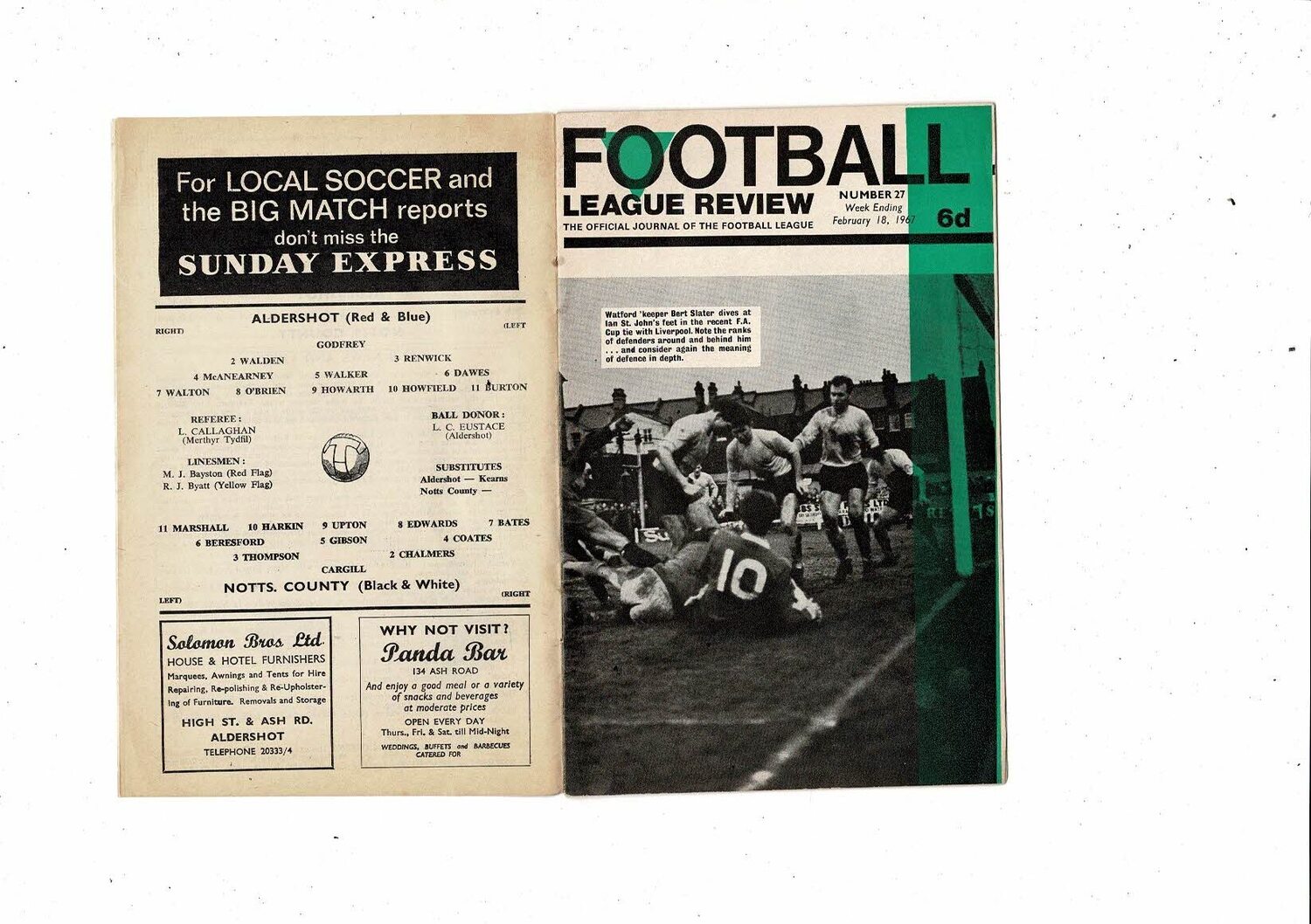 1966/67 Aldershot v Notts County Football Programme + League Review