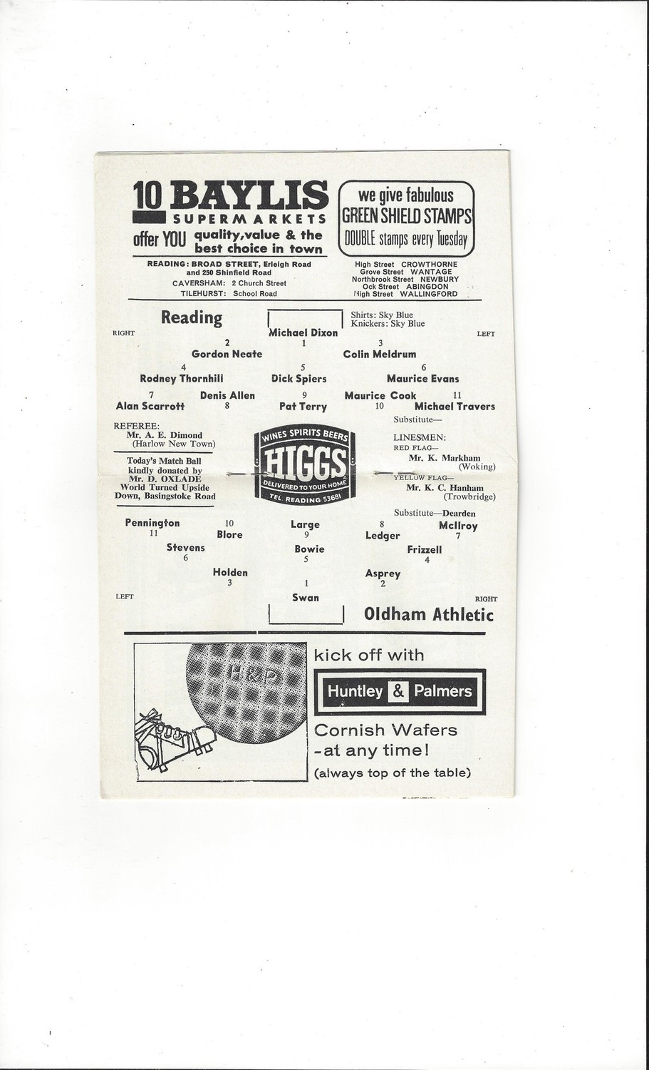 1965/66 Reading v Oldham Athletic Football Programme