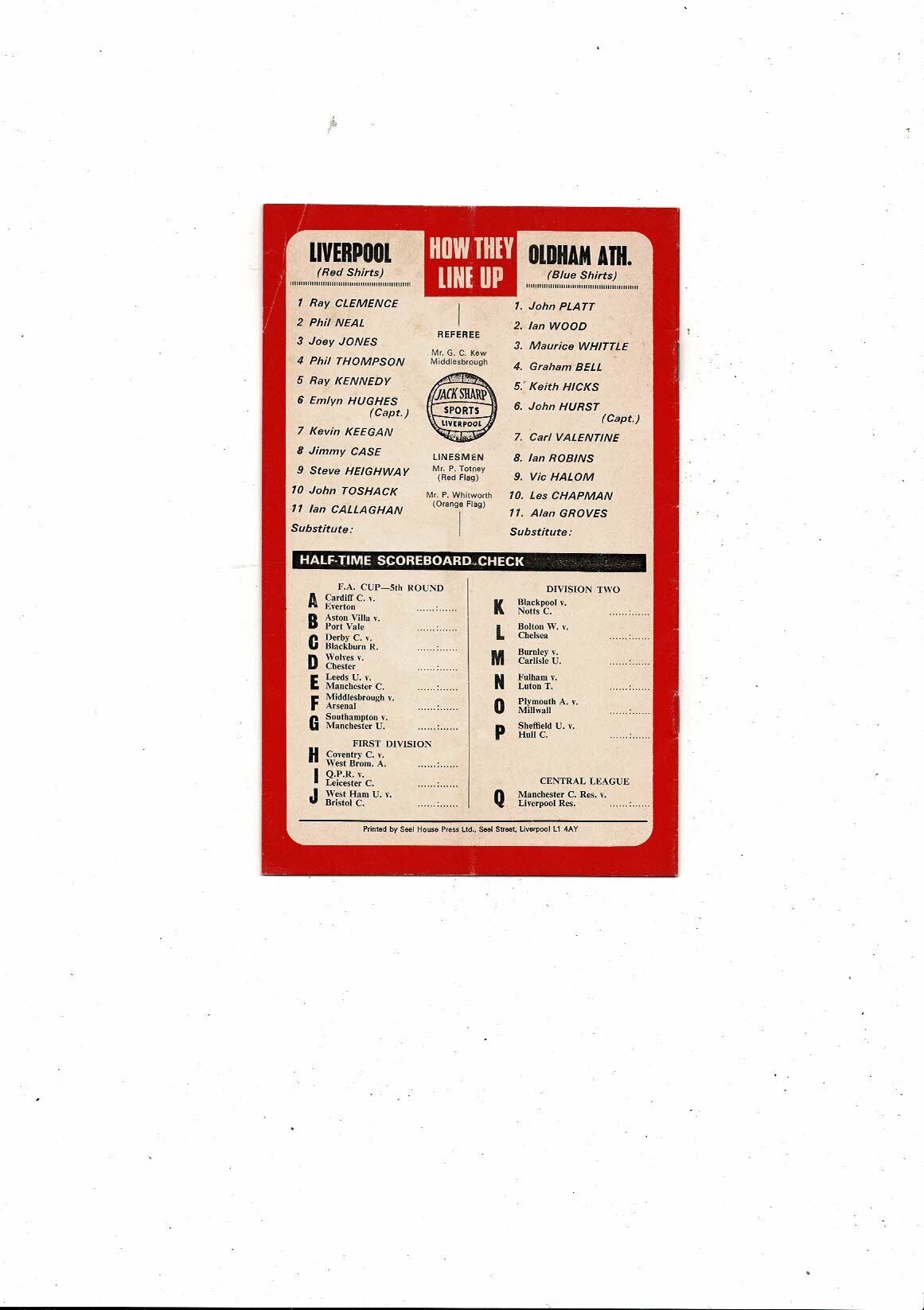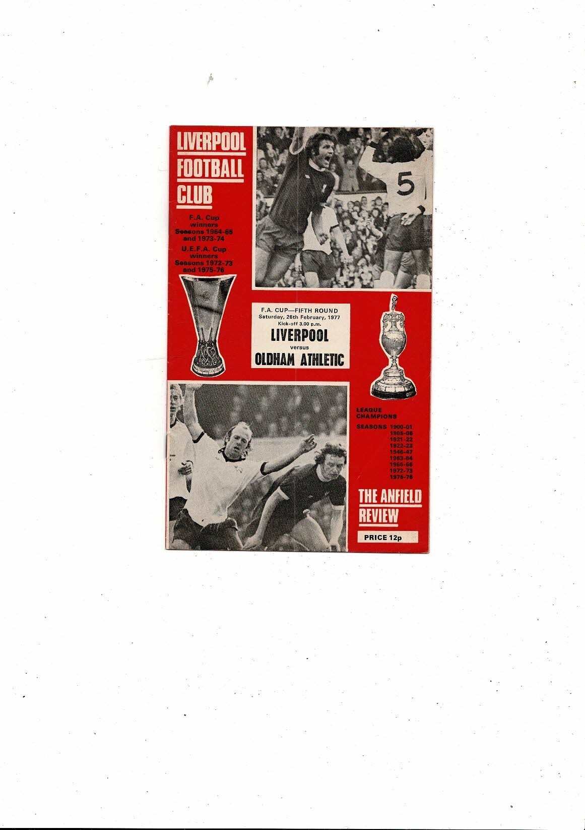 1976/77 Liverpool v Oldham Athletic FA Cup Football Programme