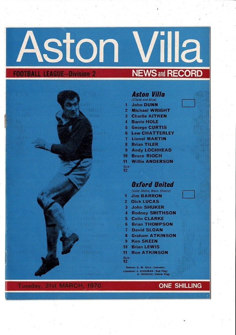 1969/70 Aston Villa v Oxford United Football Programme