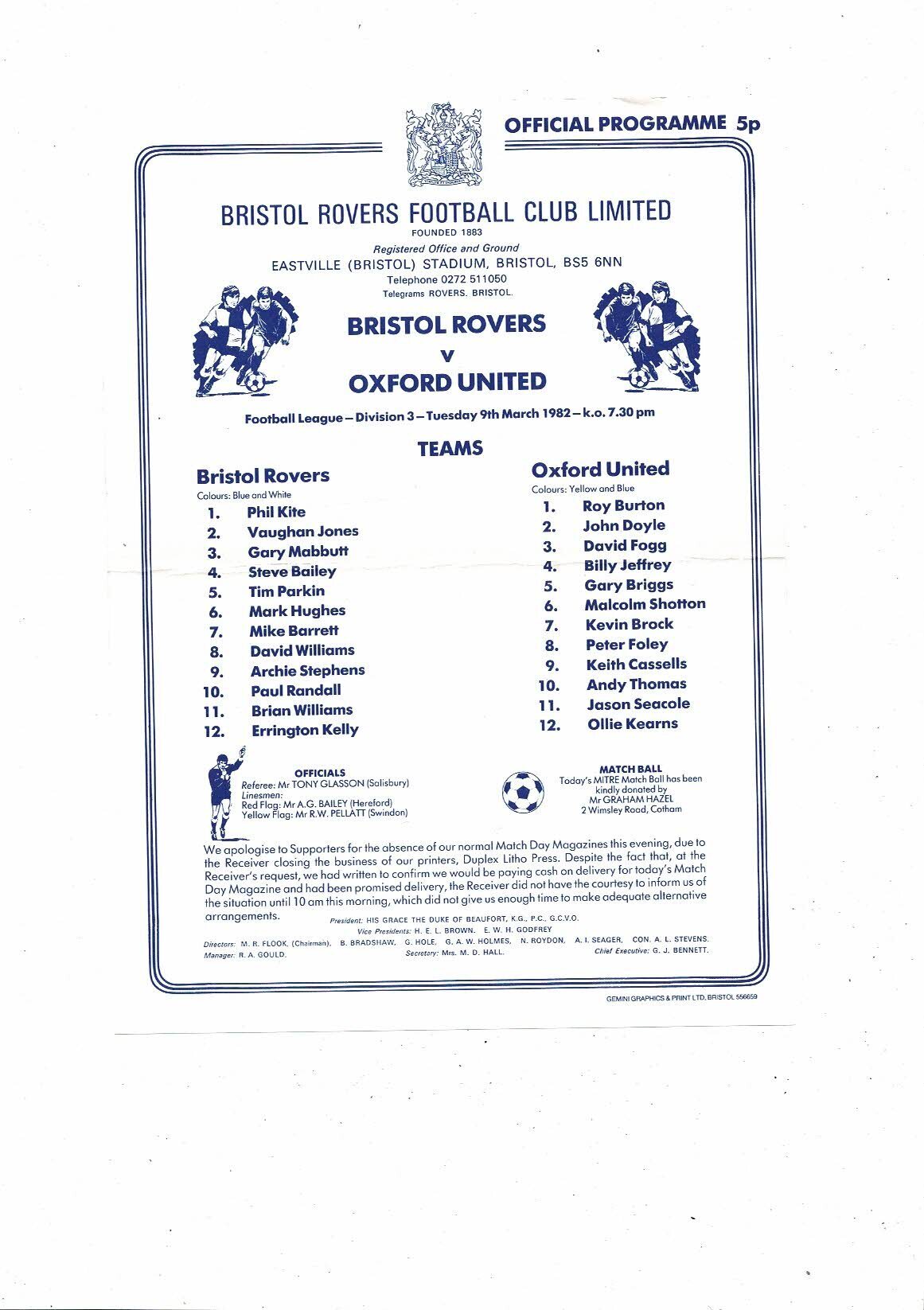 1981/82 Bristol Rovers v Oxford United Football Programme