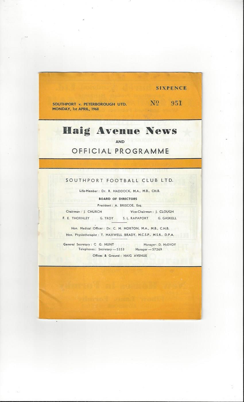 1967/68 Southport v Peterborough United Football Programme + League Review