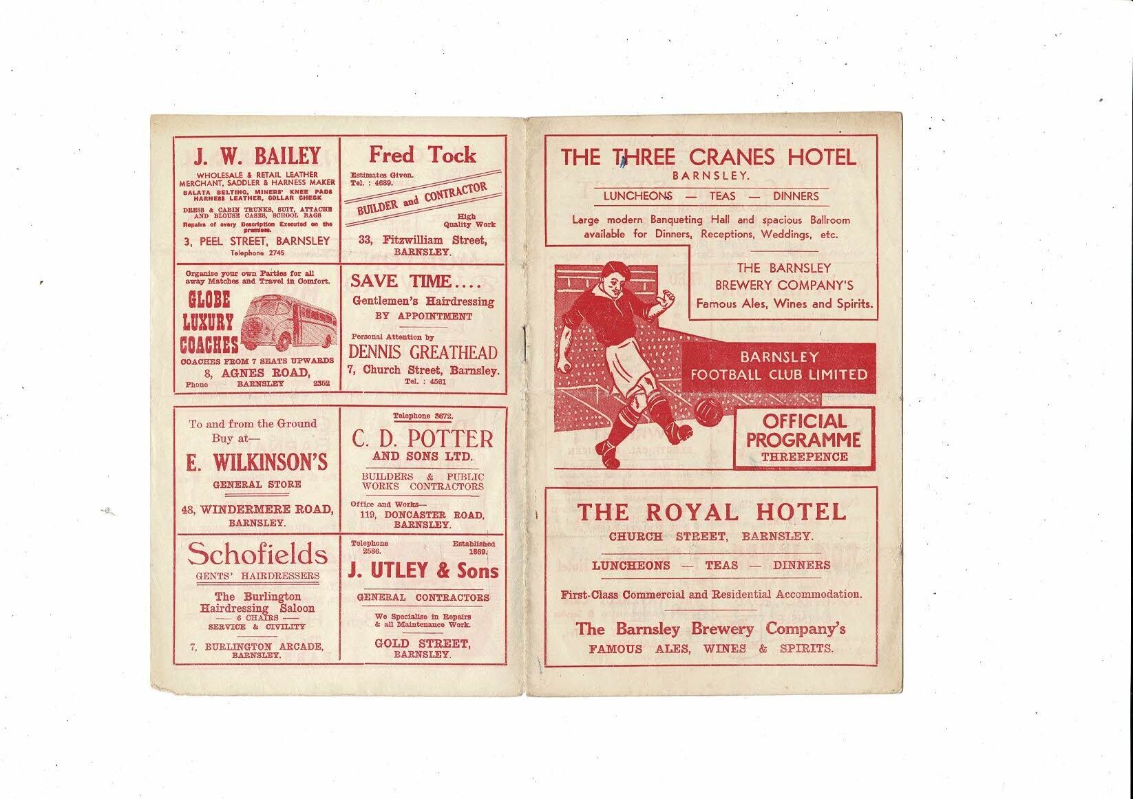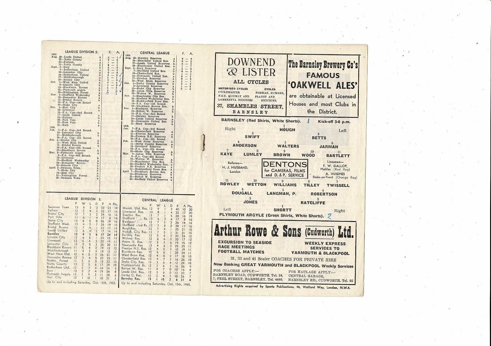 1955/56 Barnsley v Plymouth Argyle Football Programme