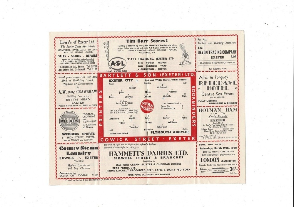 1957/58 Exeter City v Plymouth Argyle Football Programme