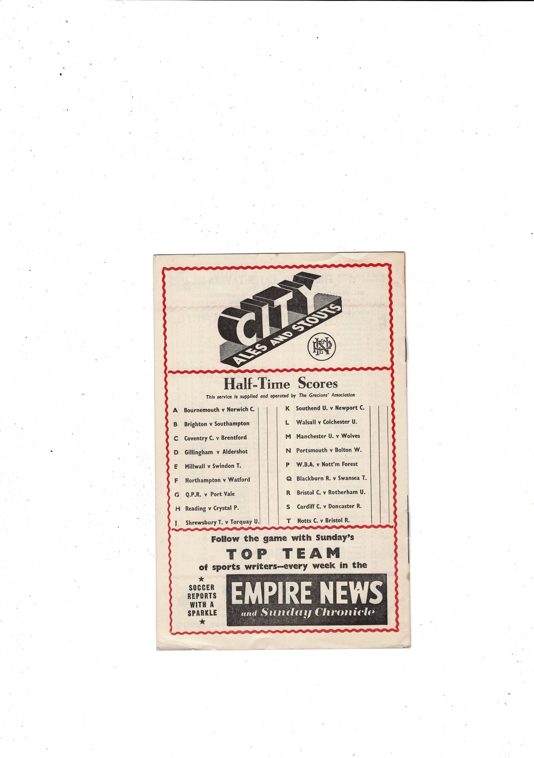 This original Football Programme is creased also has a fold with some minor staining, a couple of tiny tears, score & scorers noted. Please see scans