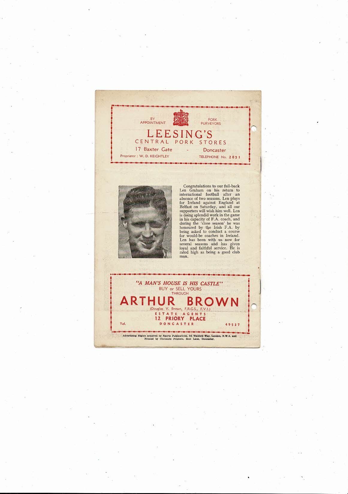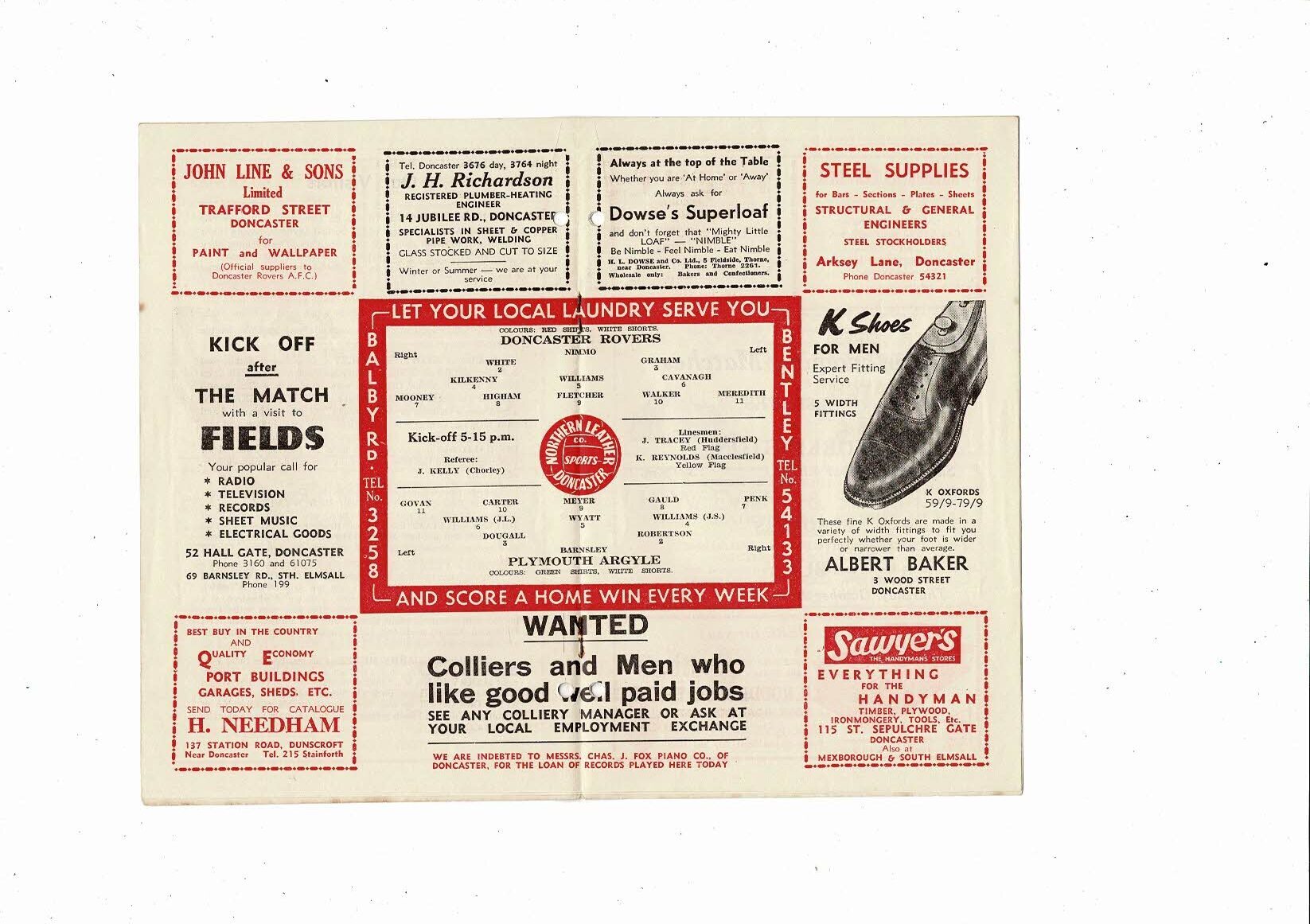 1958/59 Doncaster Rovers v Plymouth Argyle Football Programme