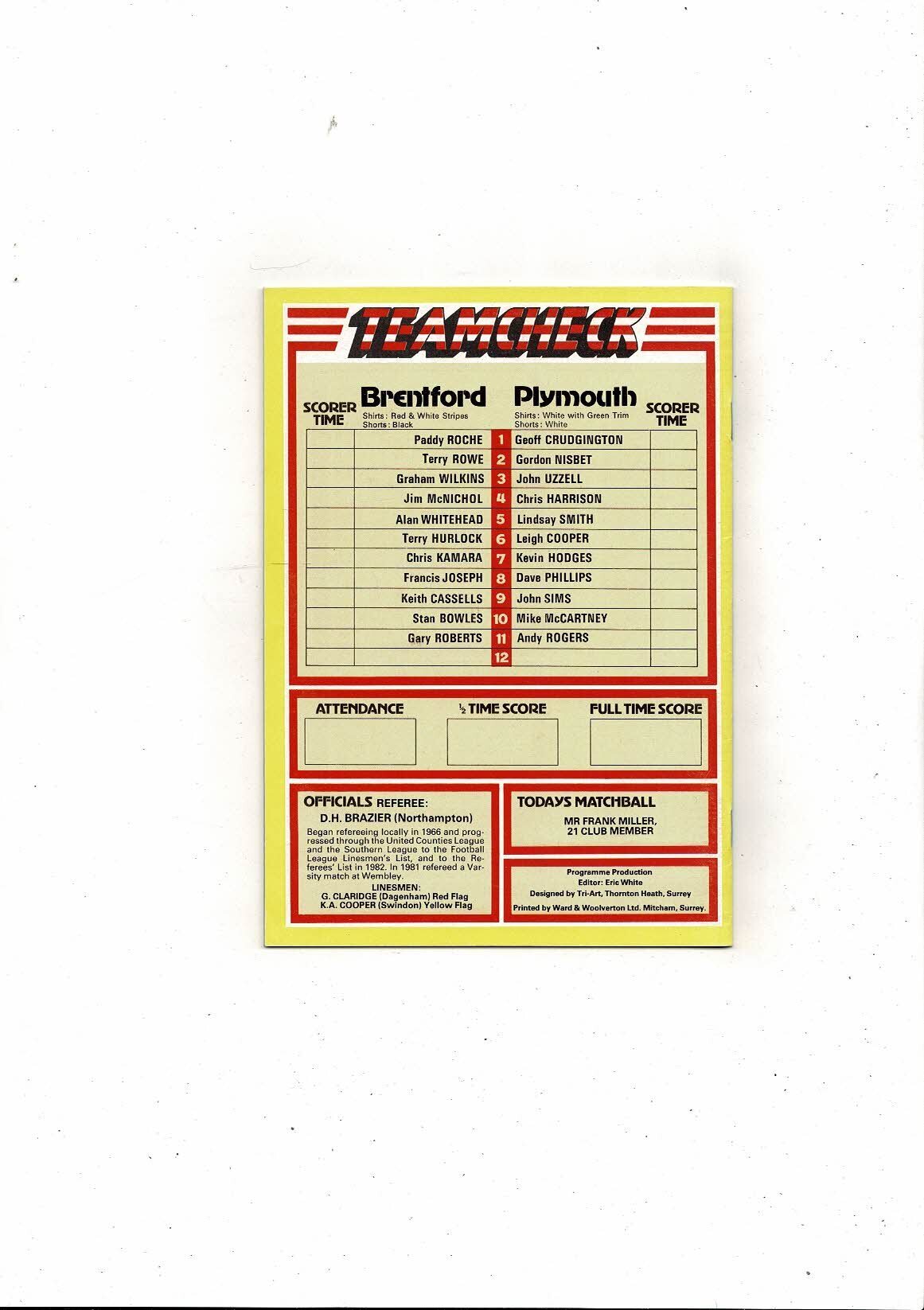 1982/83 Brentford v Plymouth Argyle Football Programme