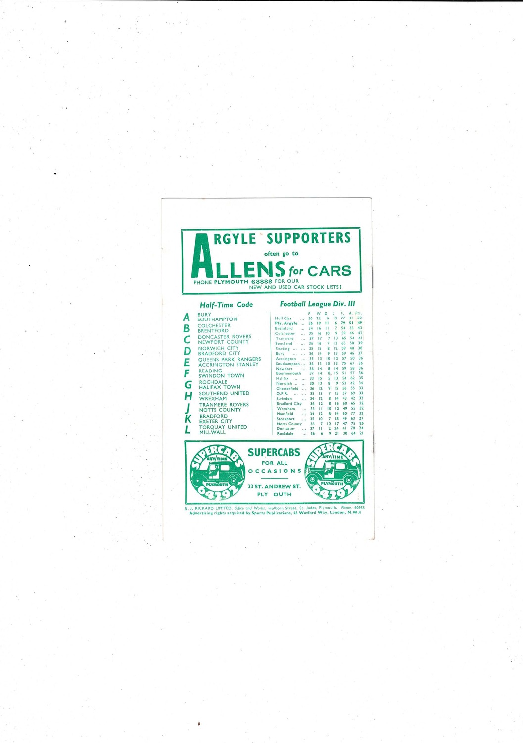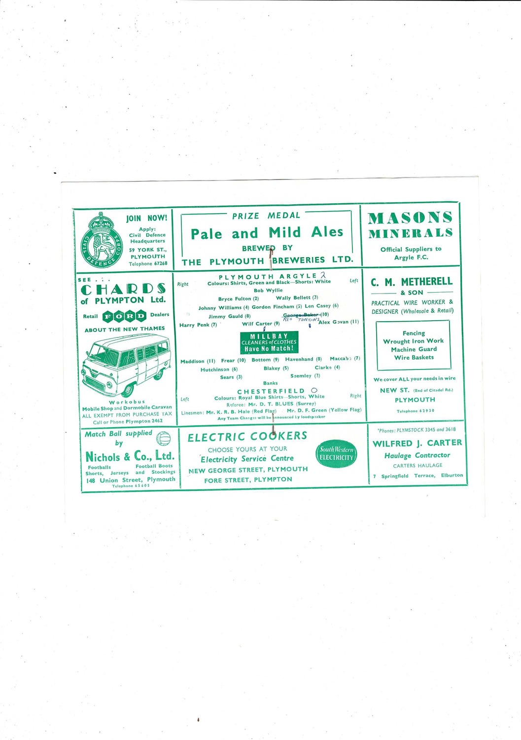1958/59 Plymouth Argyle v Chesterfield Football Programme