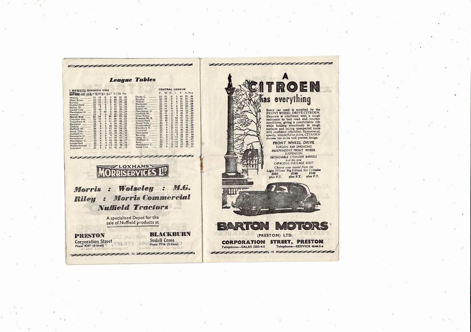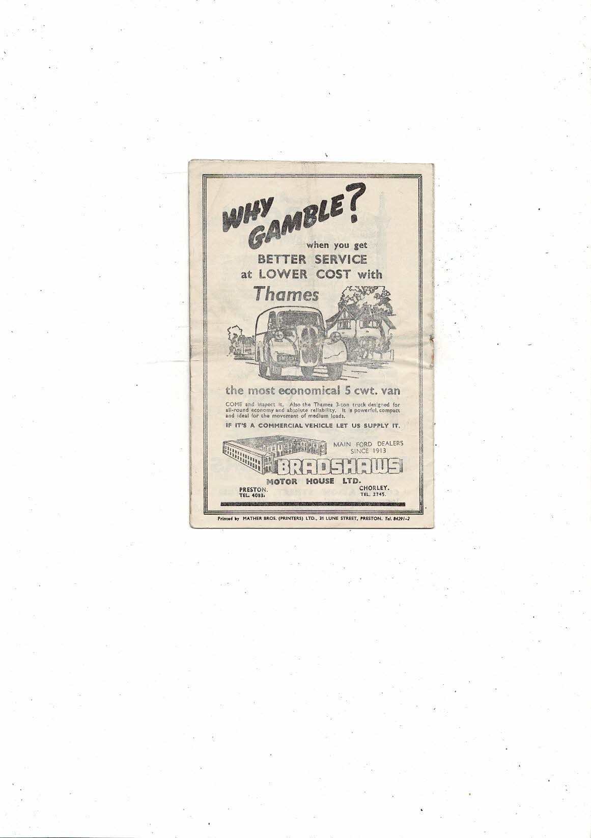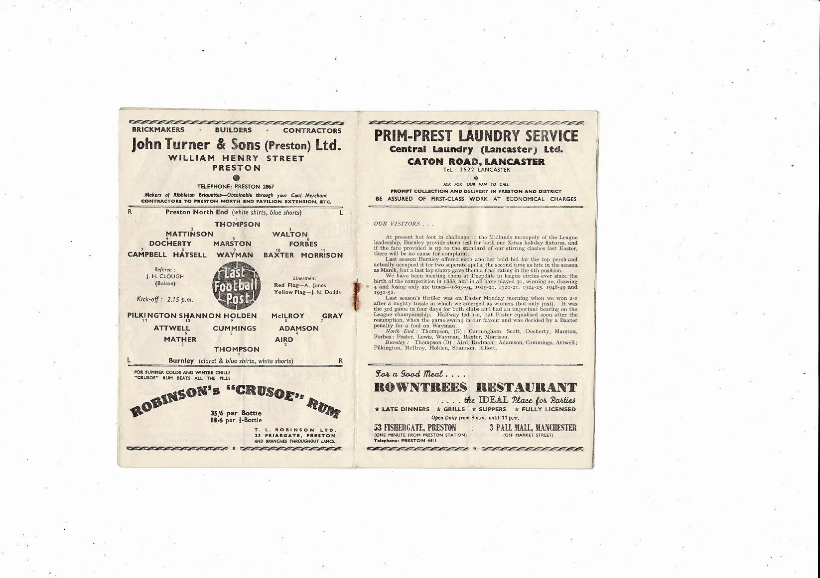 1953/54 Preston v Bolton Wanderers Football Programme
