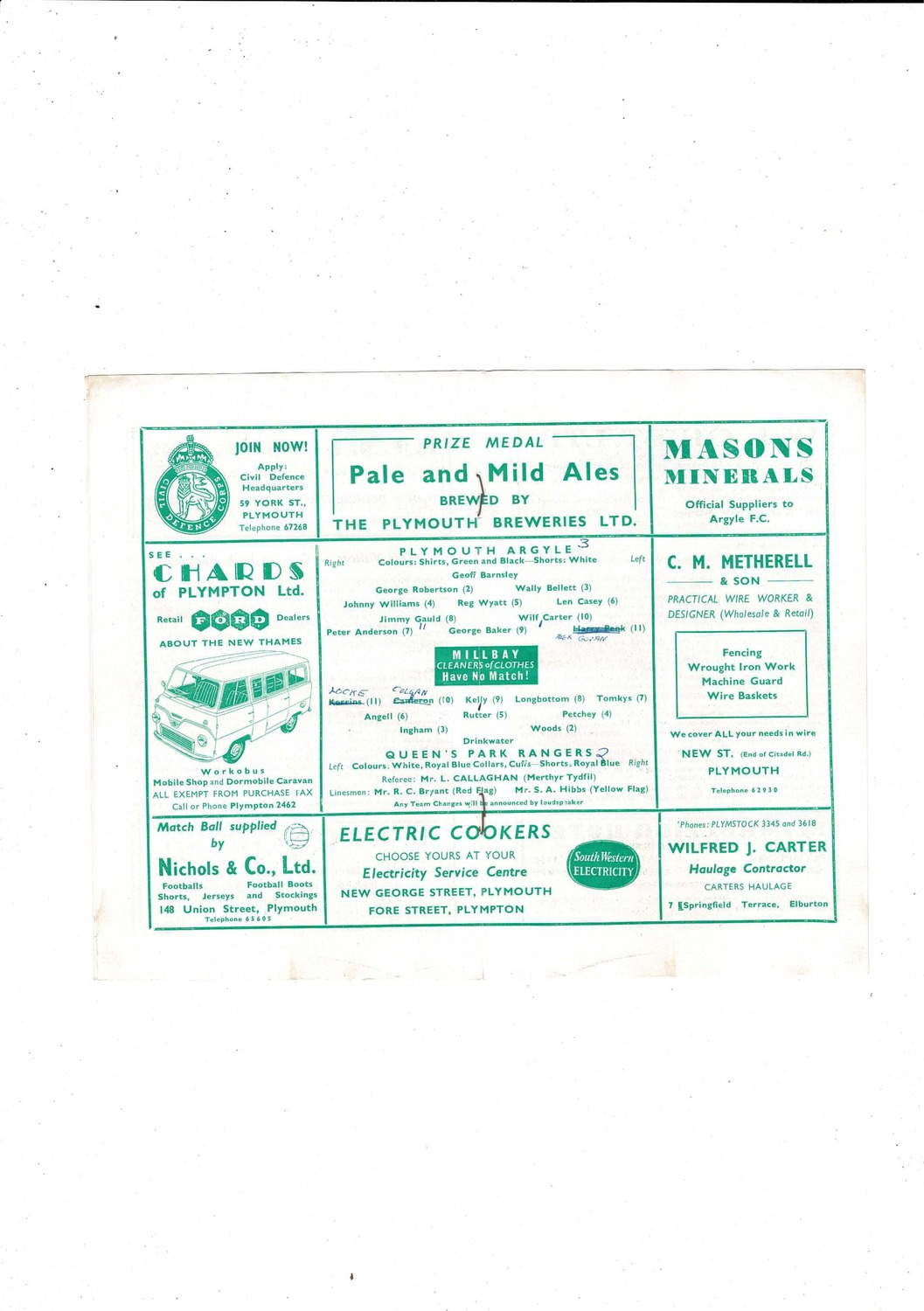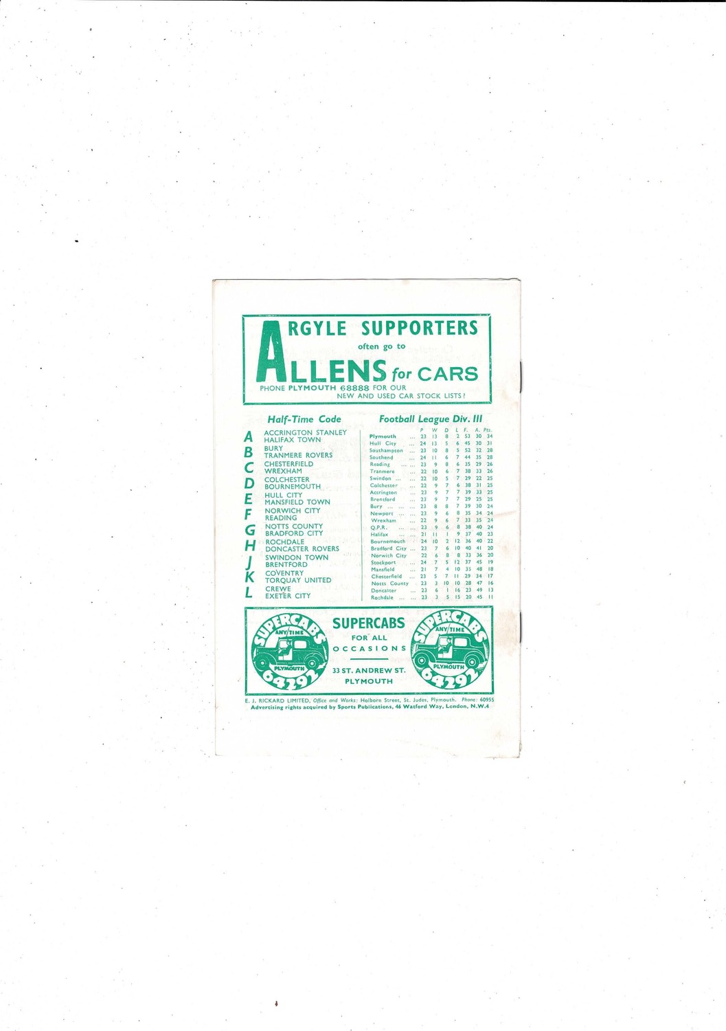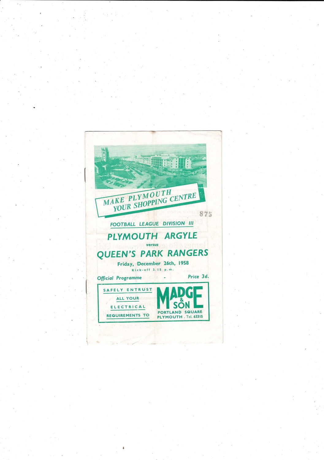 1958/59 Plymouth Argyle v Queens Park Rangers Football Programme