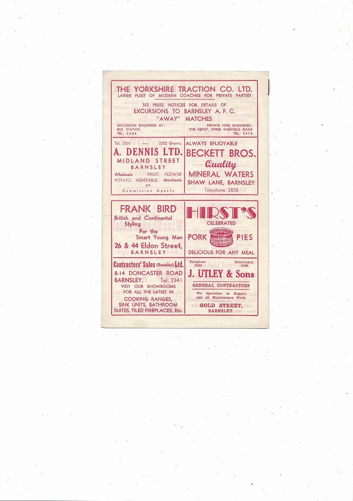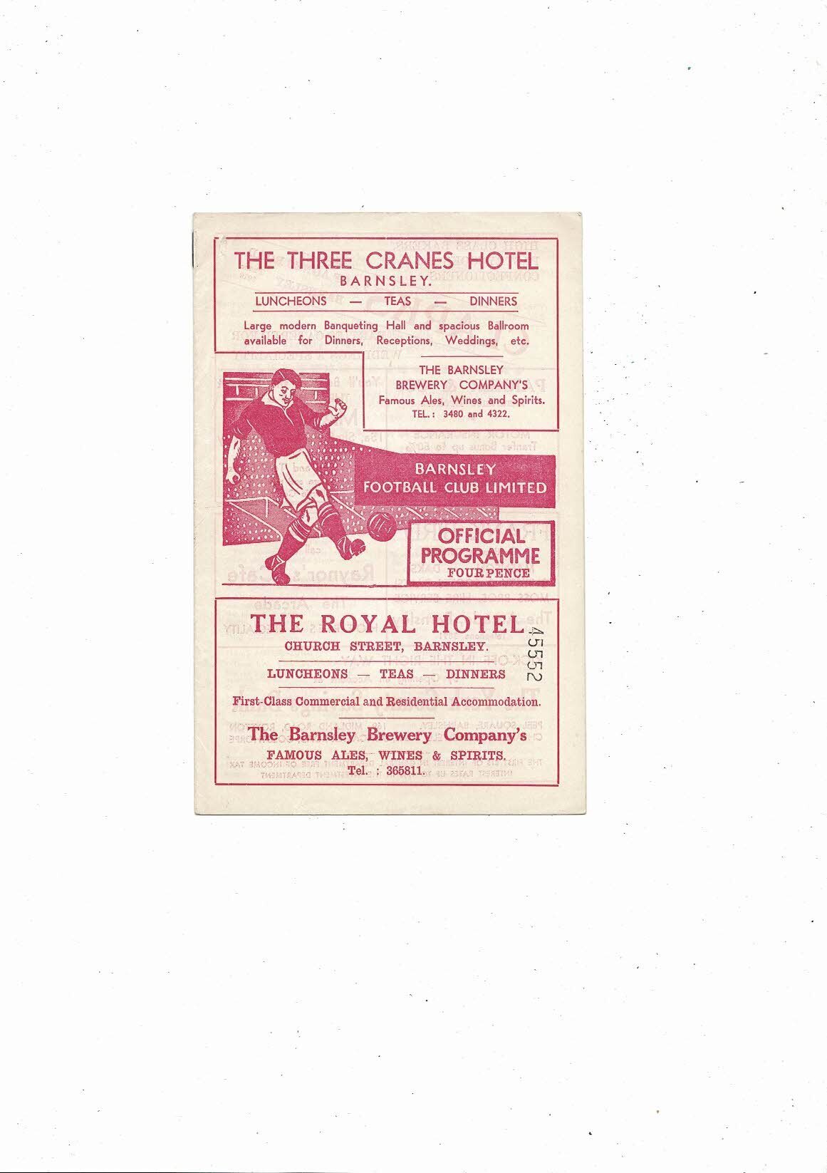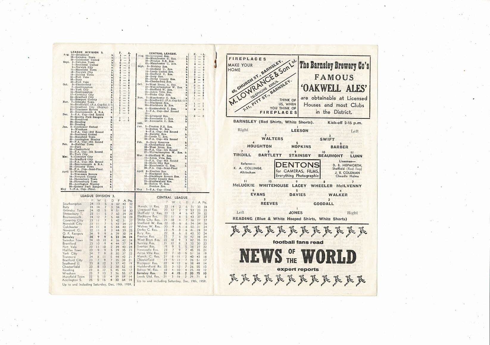 1959/60 Barnsley v Reading Football Programme