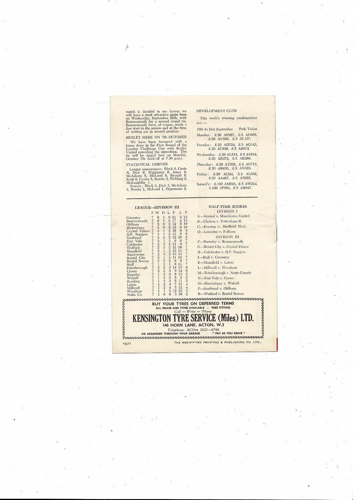 1963/64 Brentford v Reading Football Programme