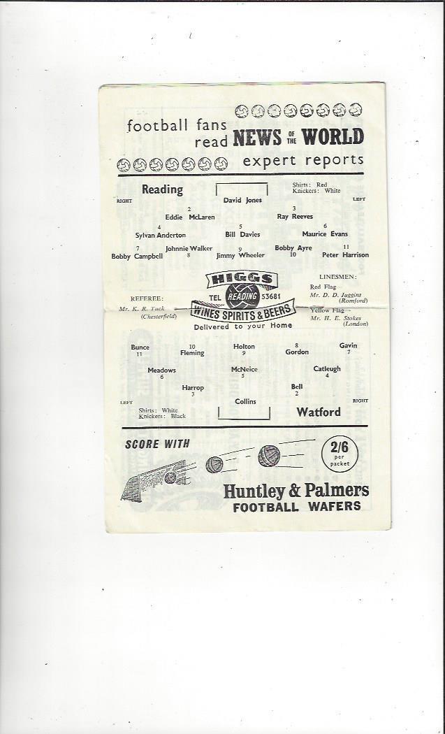 1958/59 Reading v Watford FA Cup Replay Football Programme