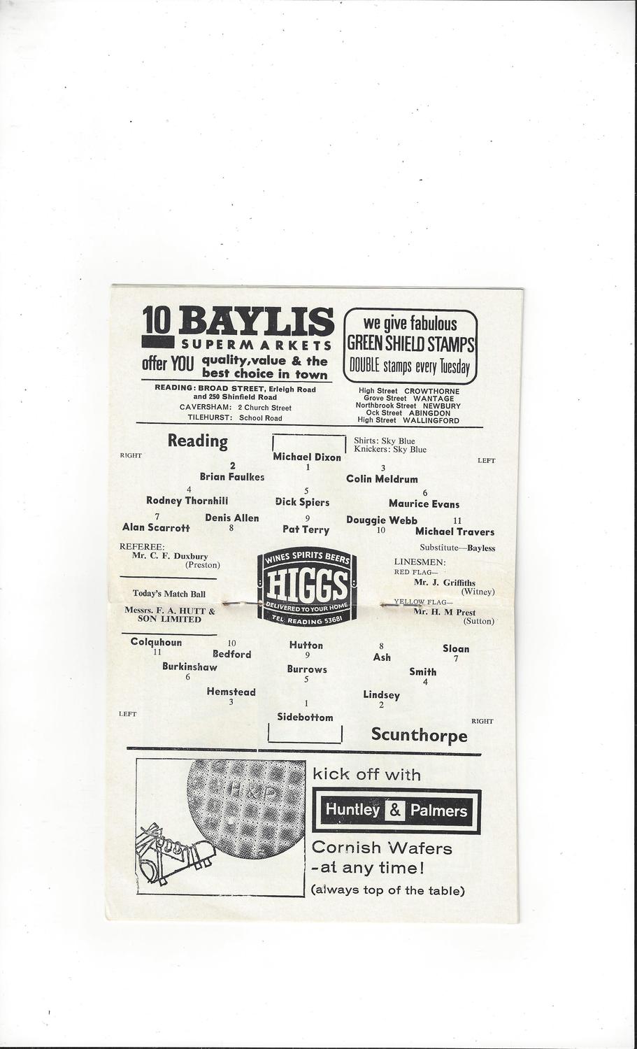 1965/66 Reading v Scunthorpe United Football Programme