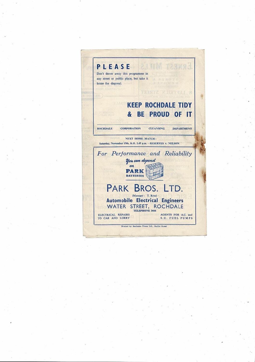 This Original Football Programme is creased with some staining & a couple of holes on spine. No handwriting. Please see scans.