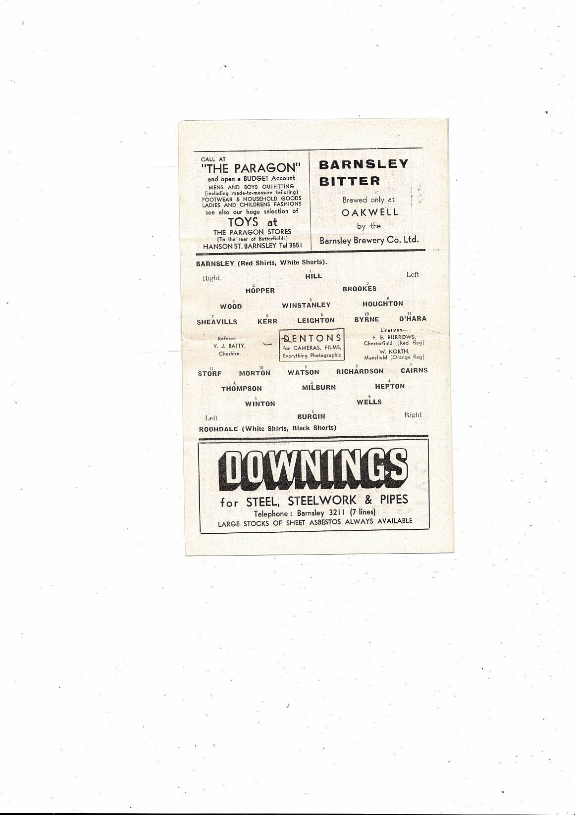1963/64 Barnsley v Rochdale FA Cup Football Programme