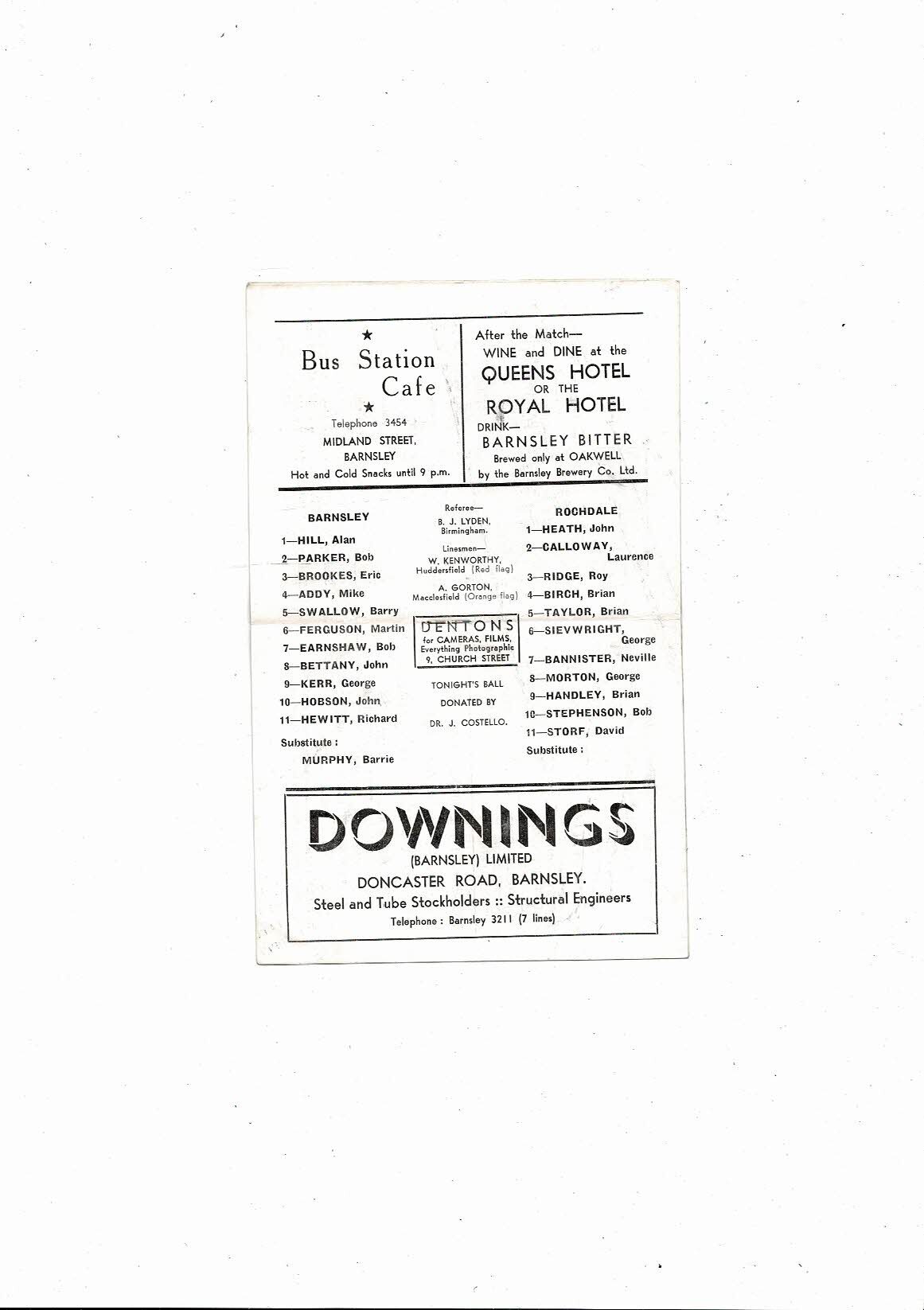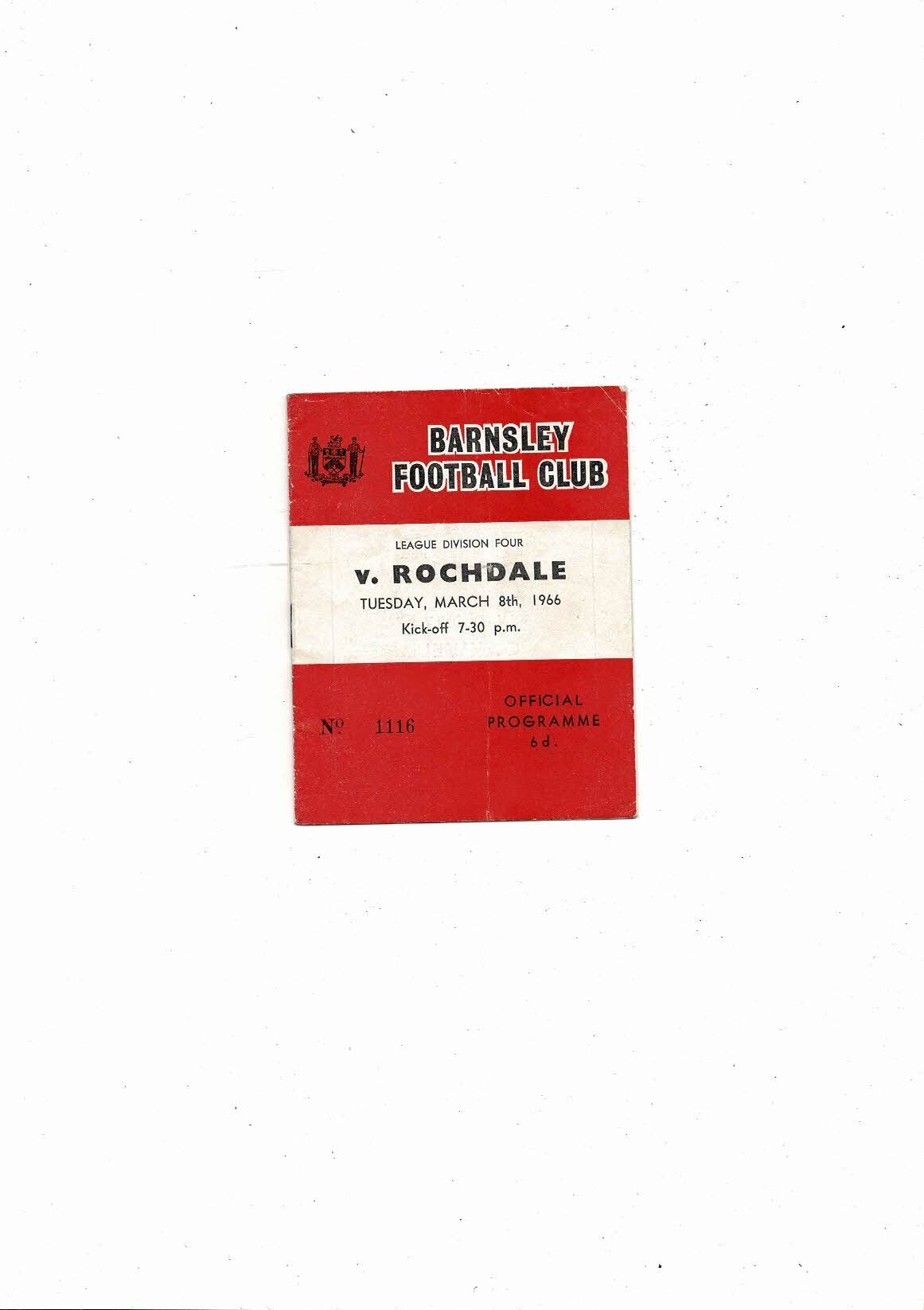 1965/66 Barnsley v Rochdale Football Programme