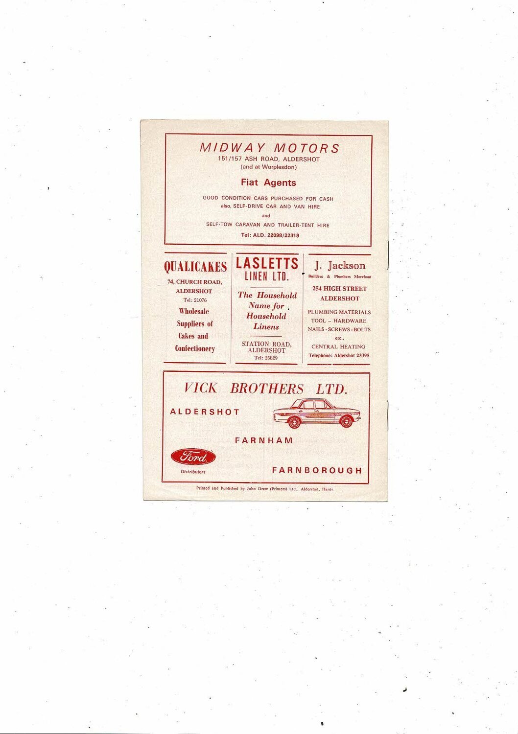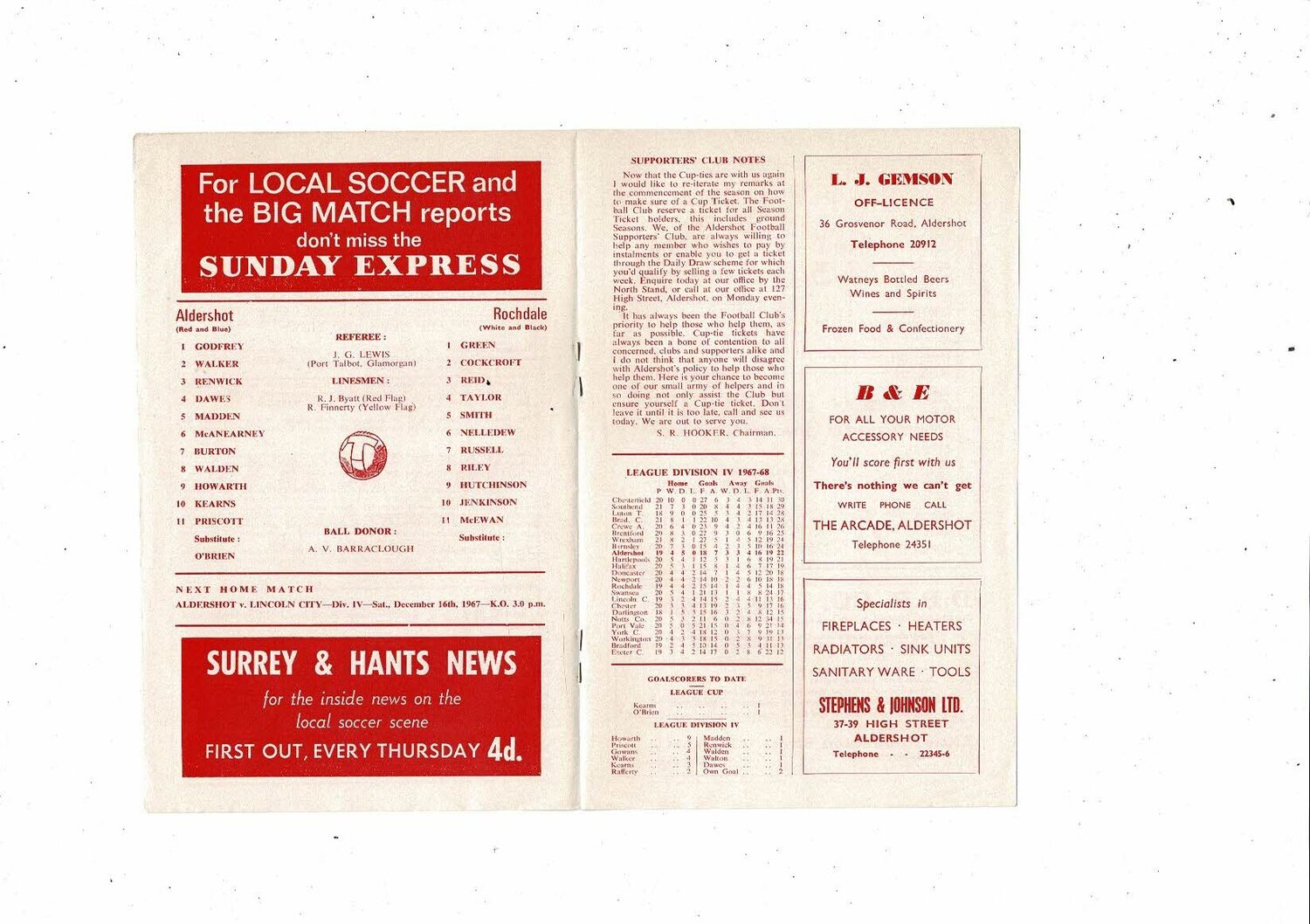 1967/68 Aldershot v Rochdale Football Programme