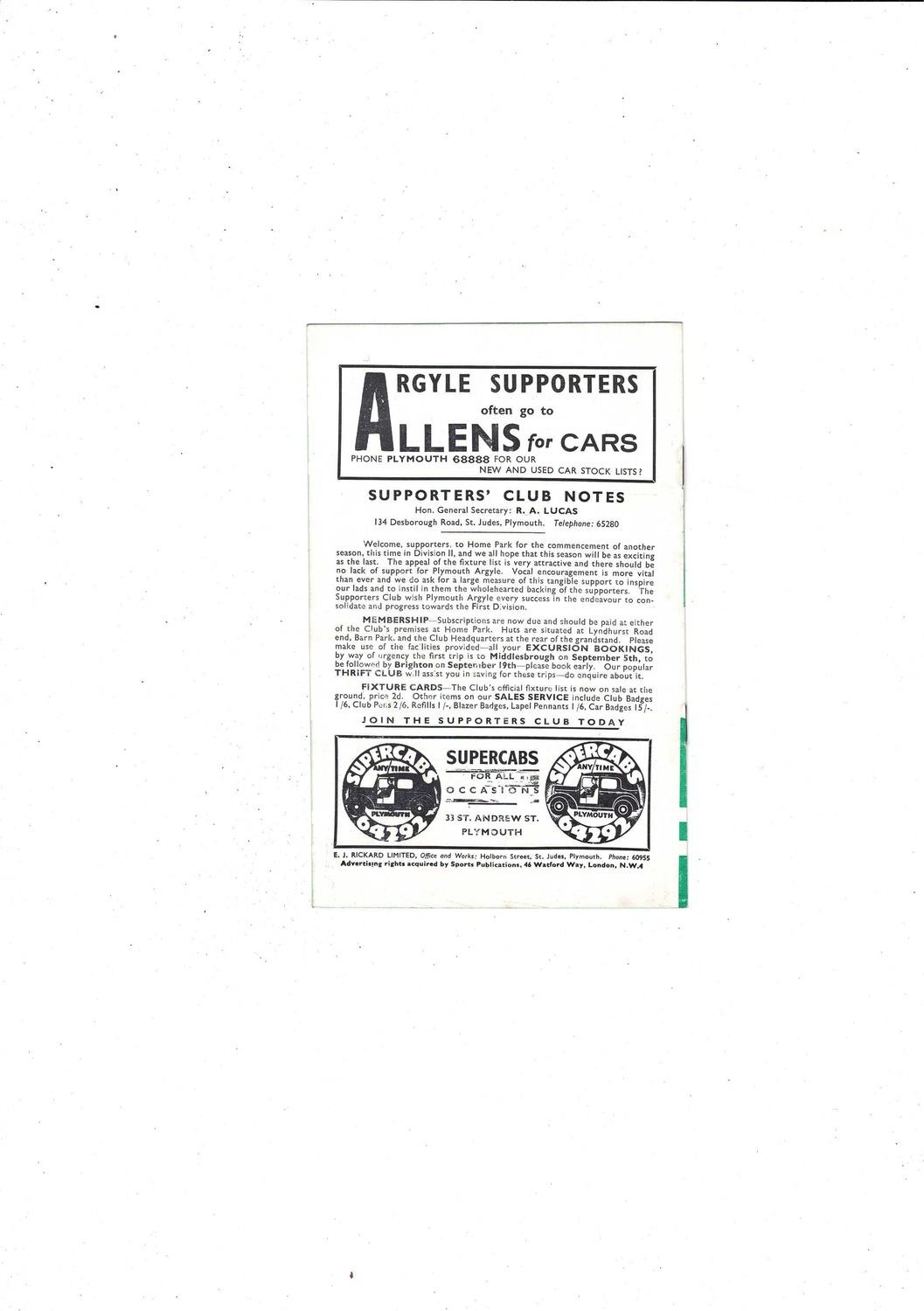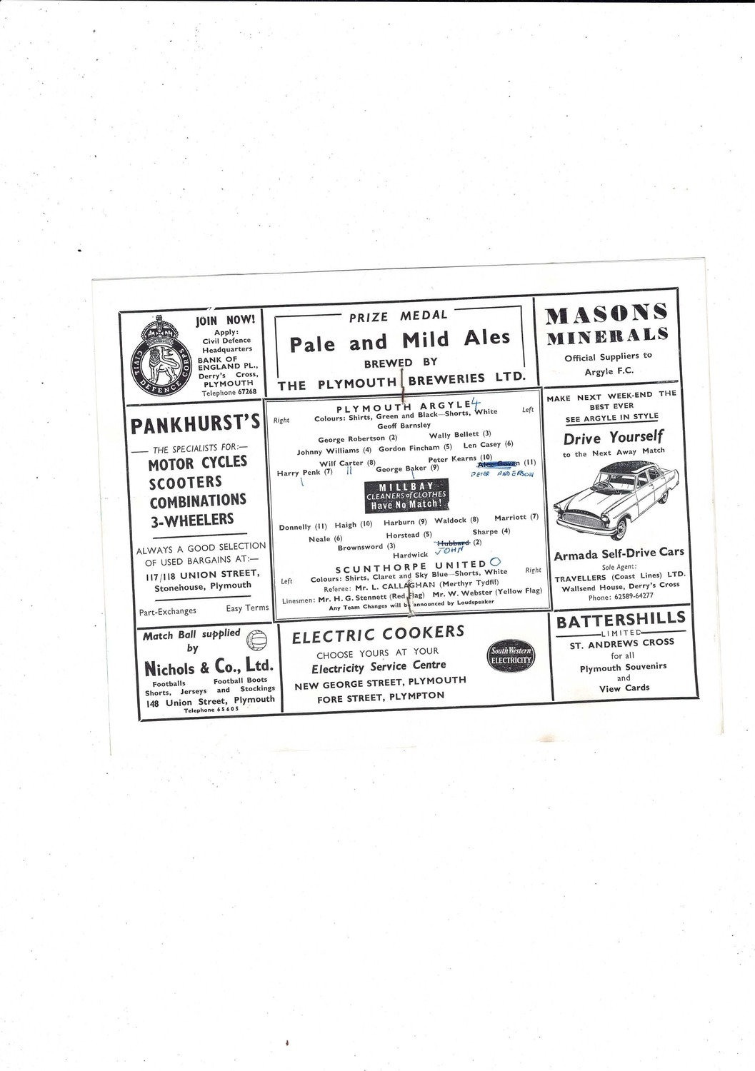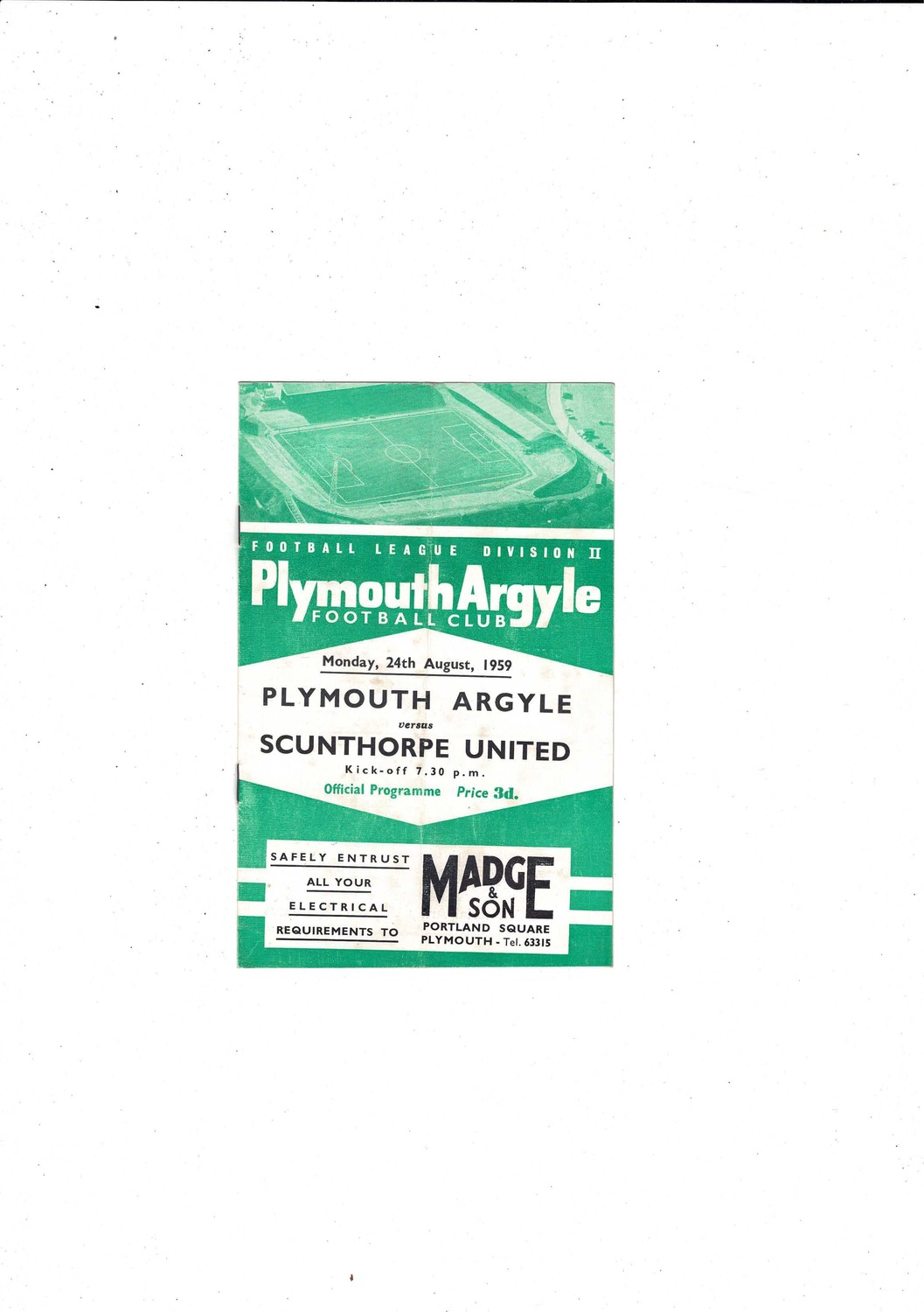 1959/60 Plymouth Argyle v Scunthorpe United Football Programme