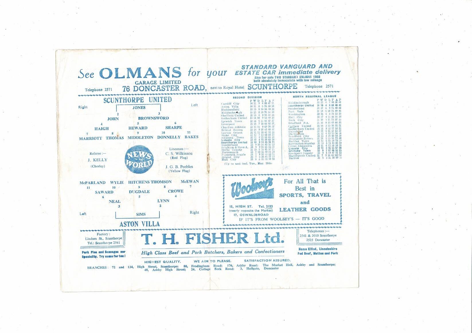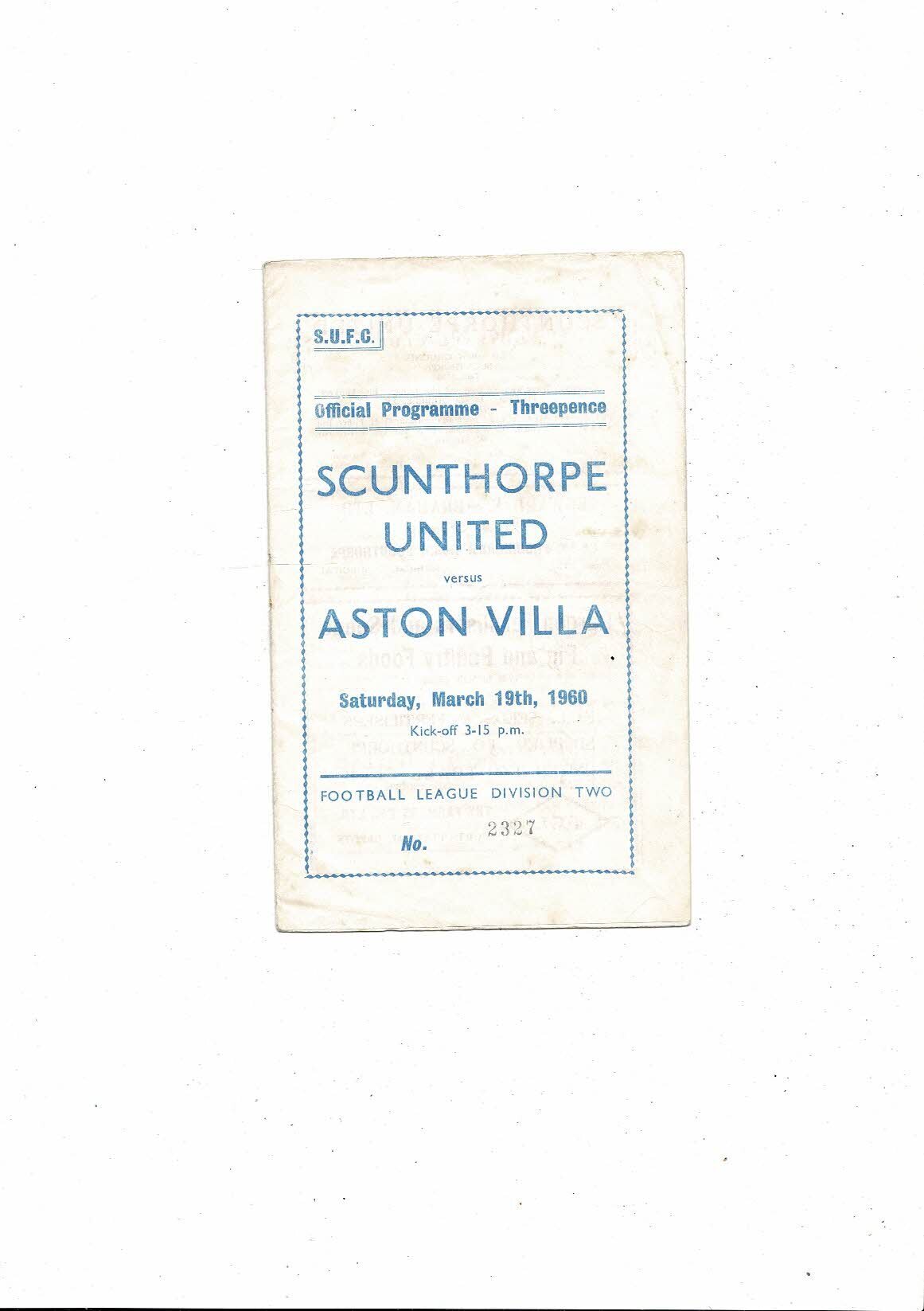 1959/60 Scunthorpe United v Aston Villa Football Programme