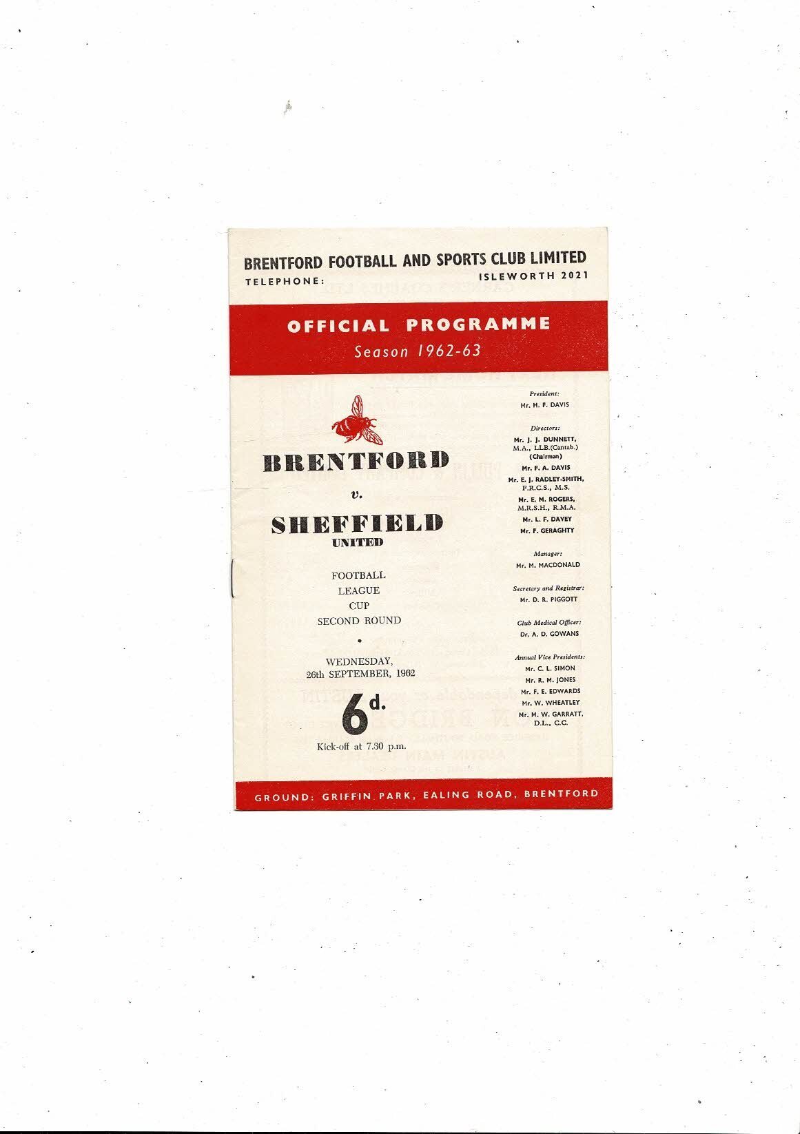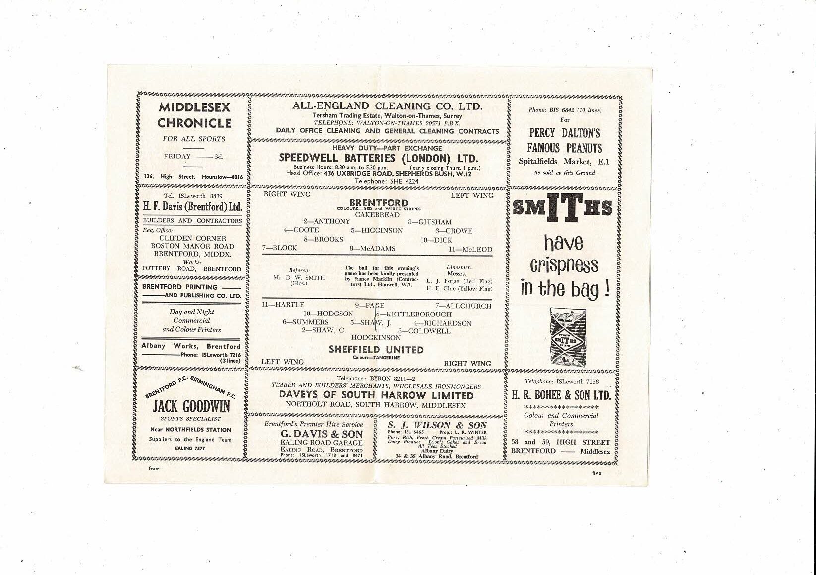 1962/63 Brentford v Sheffield United League Cup Football Programme