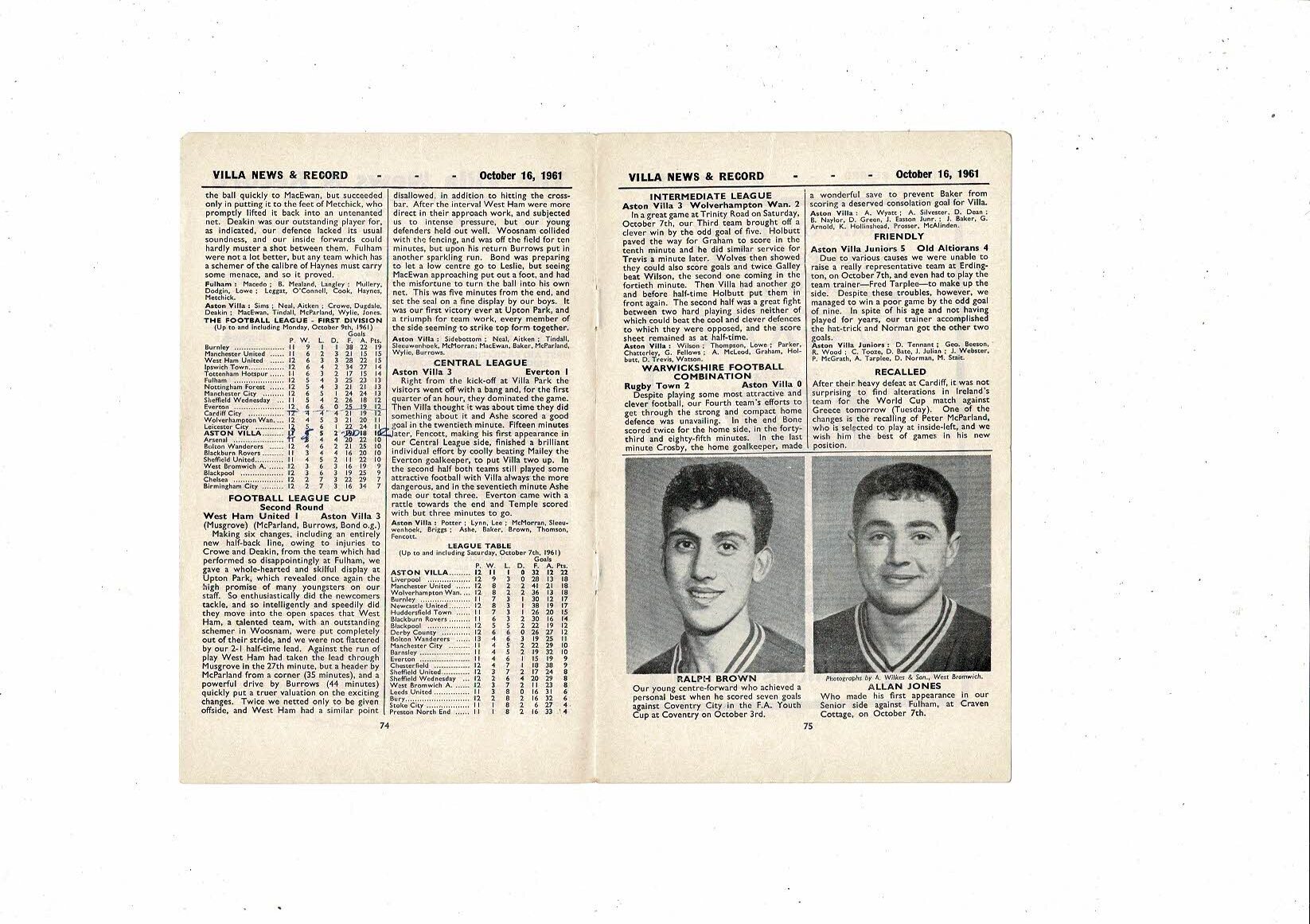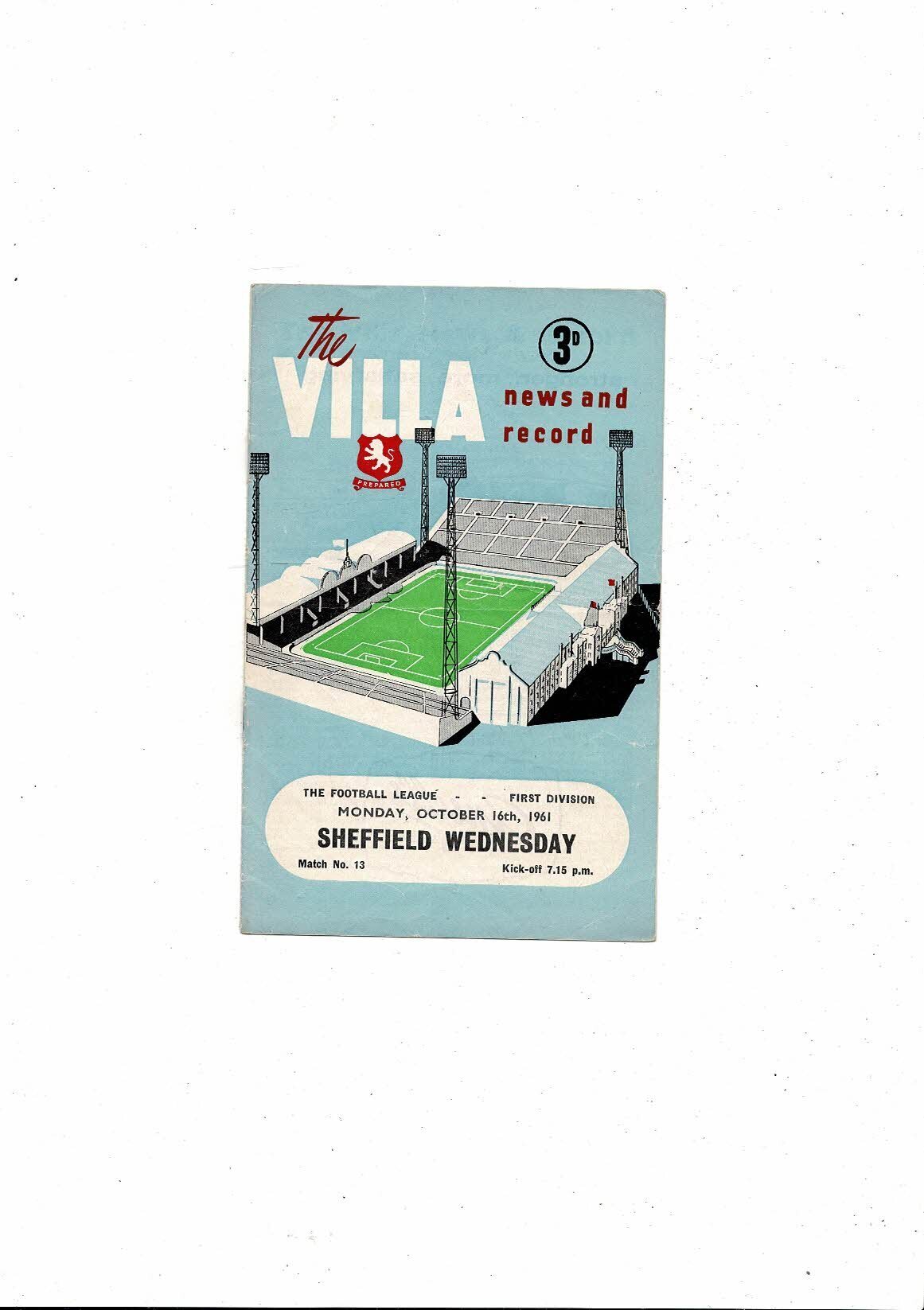1961/62 Aston Villa v Sheffield Wednesday Football Programme