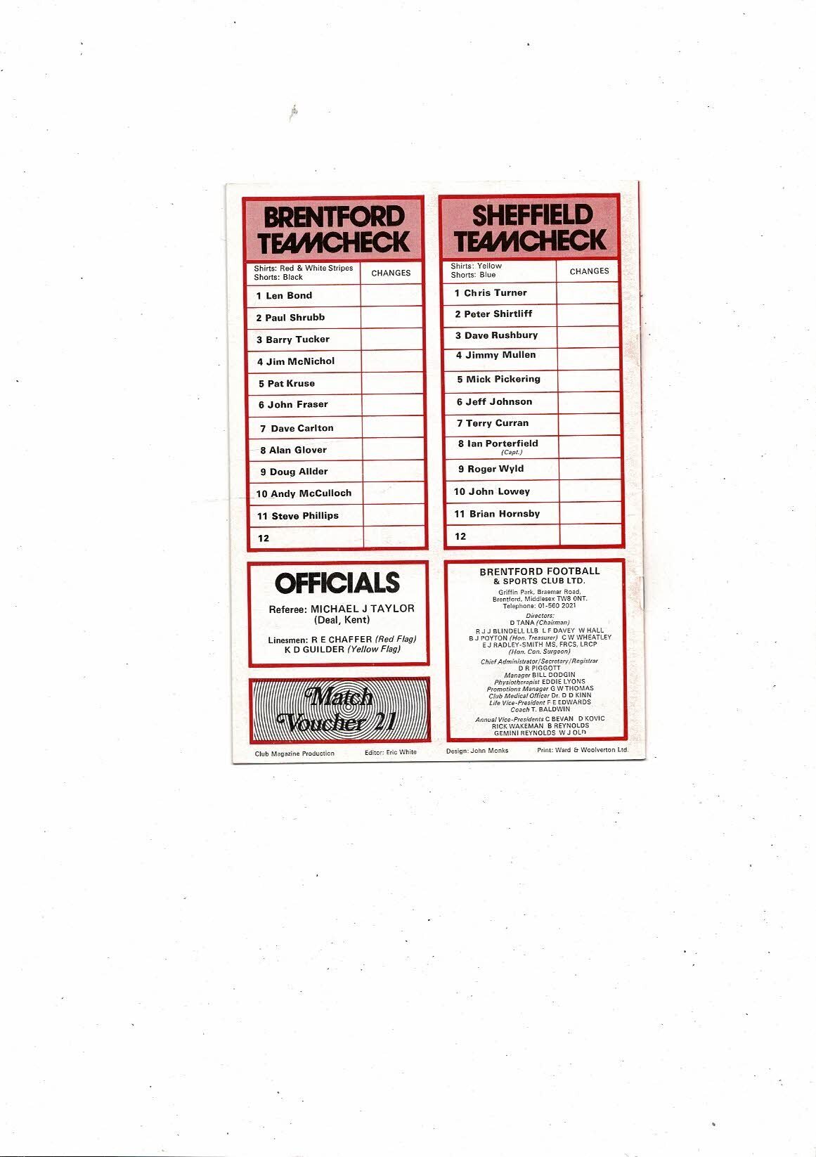 1978/79 Brentford v Sheffield Wednesday Football Programme