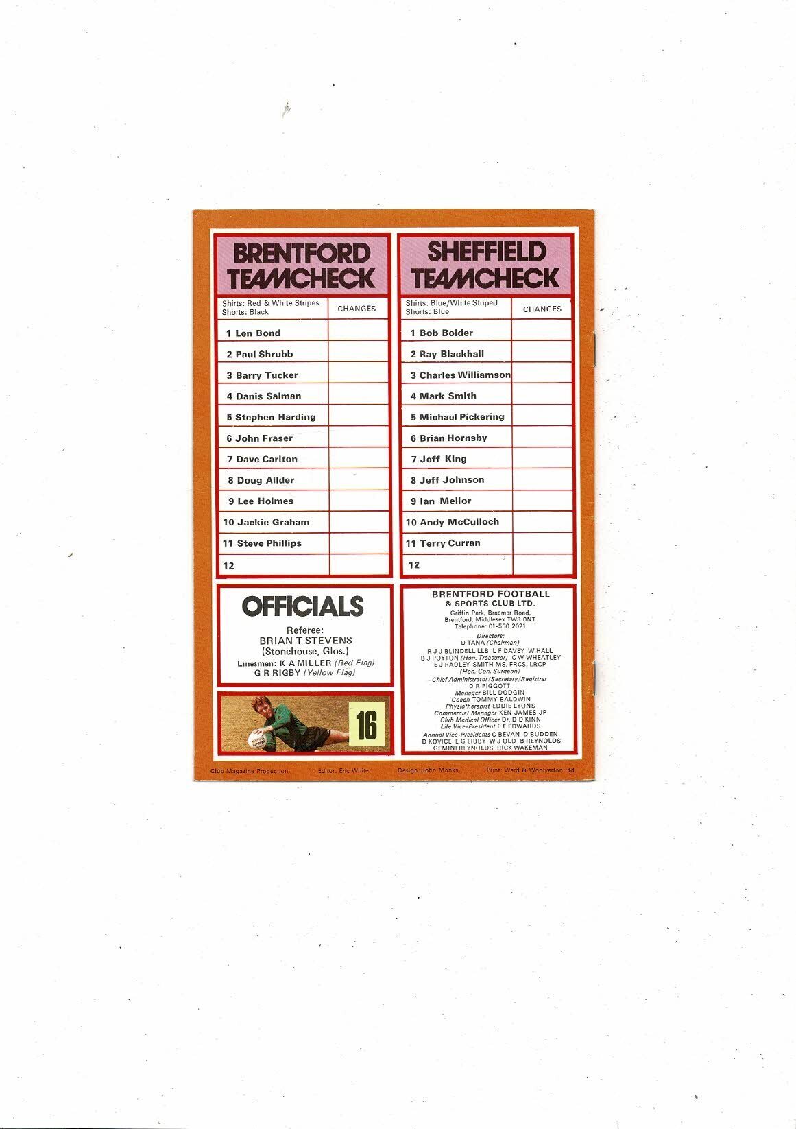 1979/80 Brentford v Sheffield Wedesday Football Programme