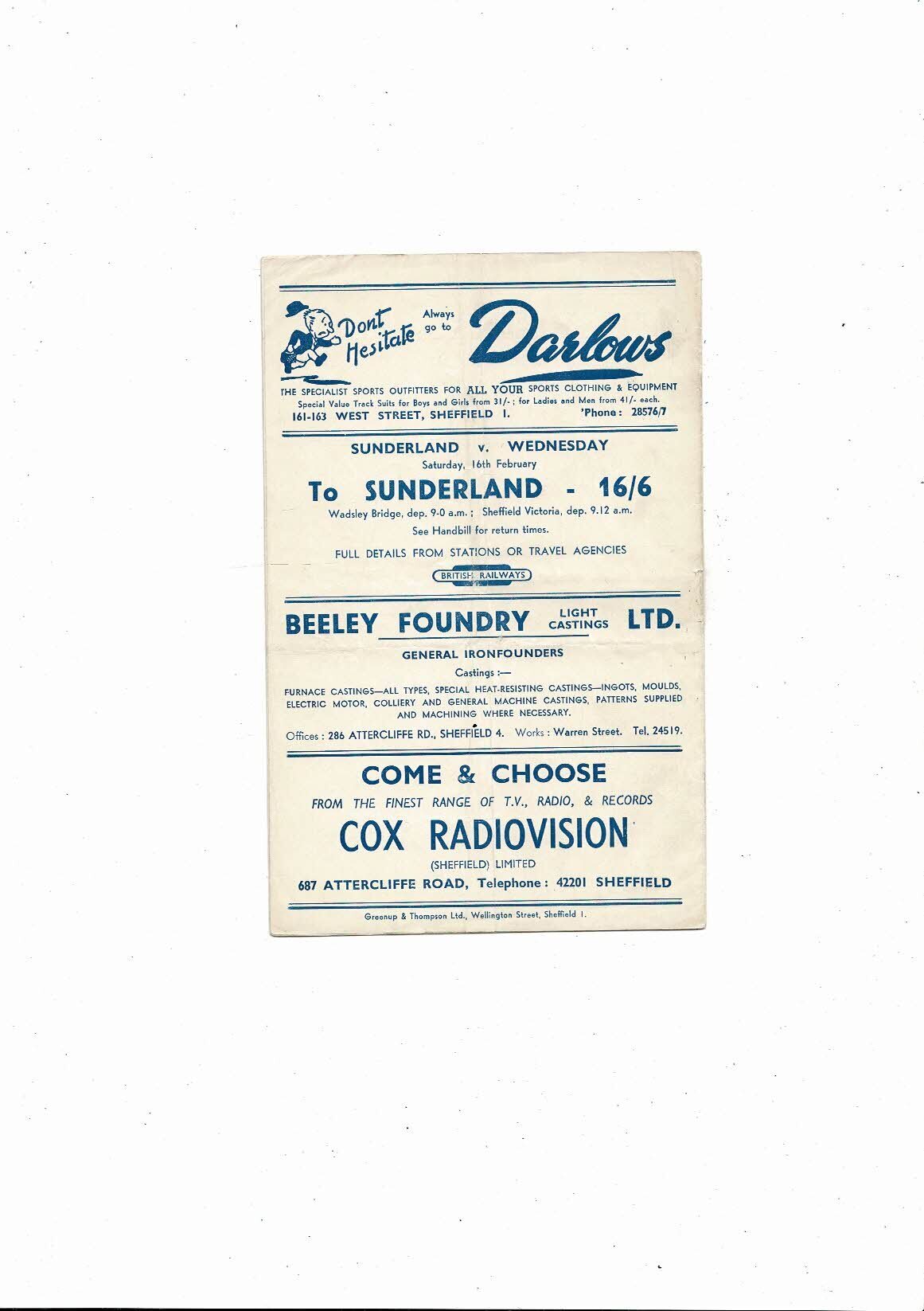 1956/57 Sheffield Wednesday v Burnley Football Programme