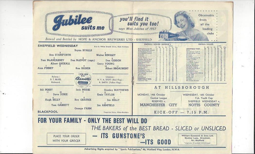 1957/58 Sheffield Wednesday v Blackpool Football Programme