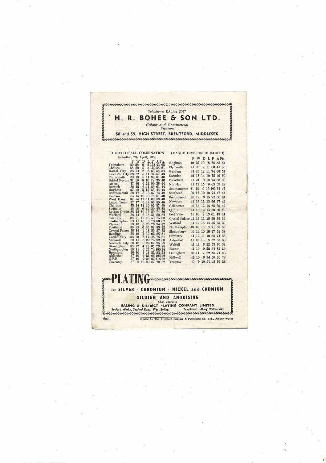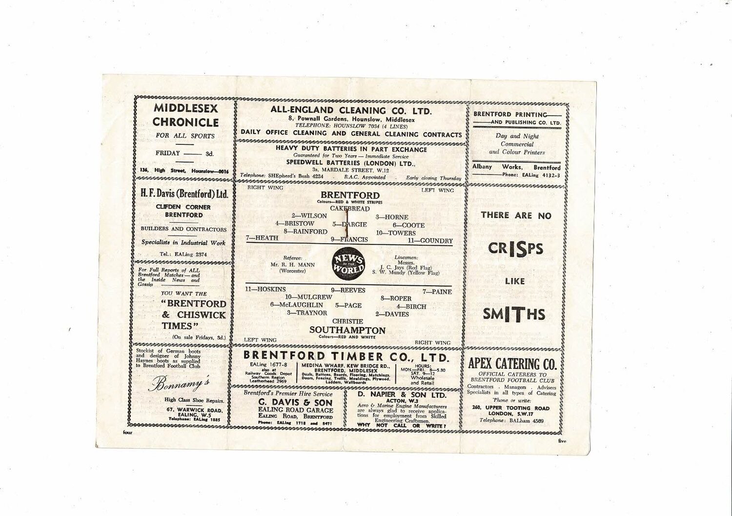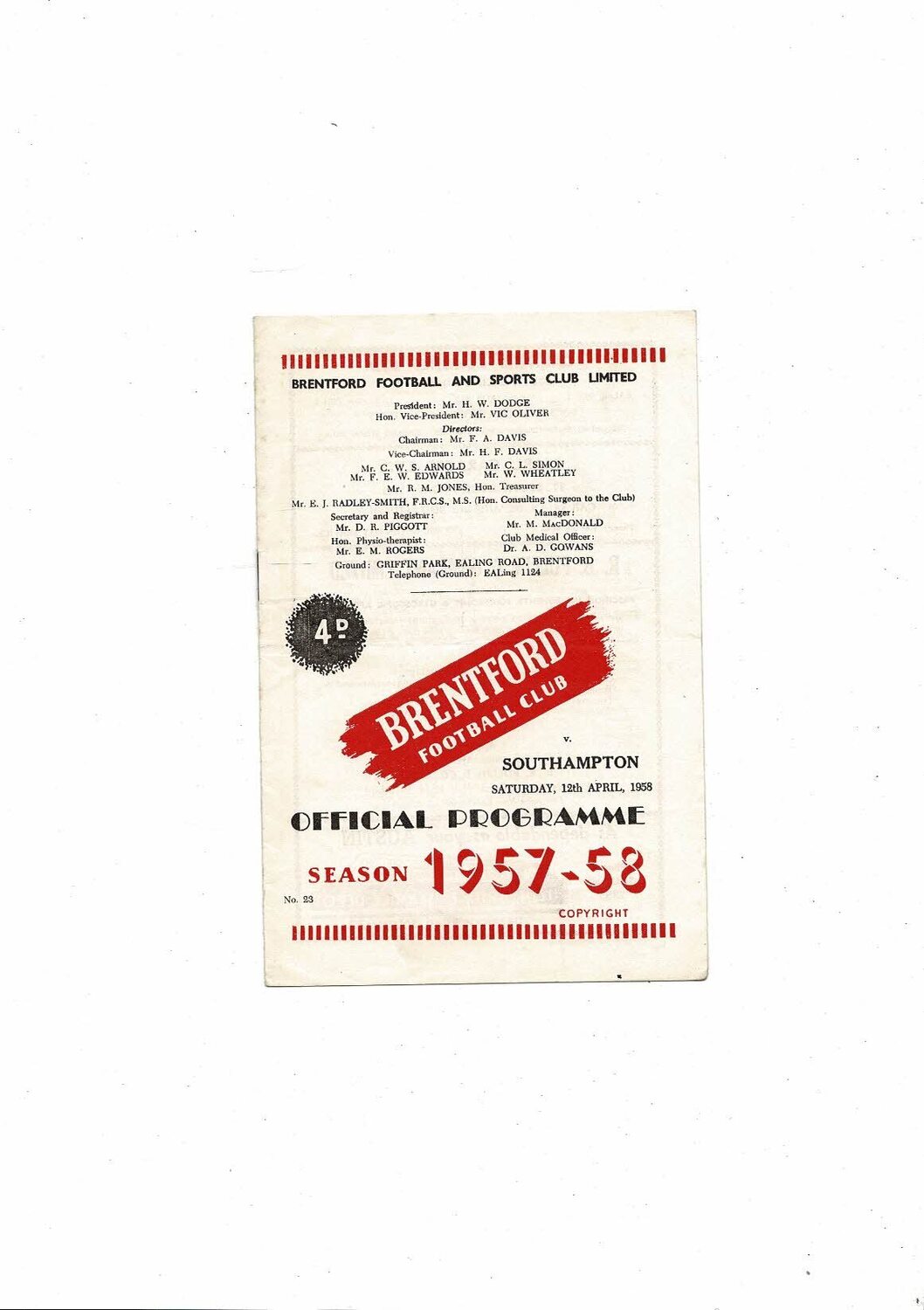 1957/58 Brentford v Southampton Football Programme