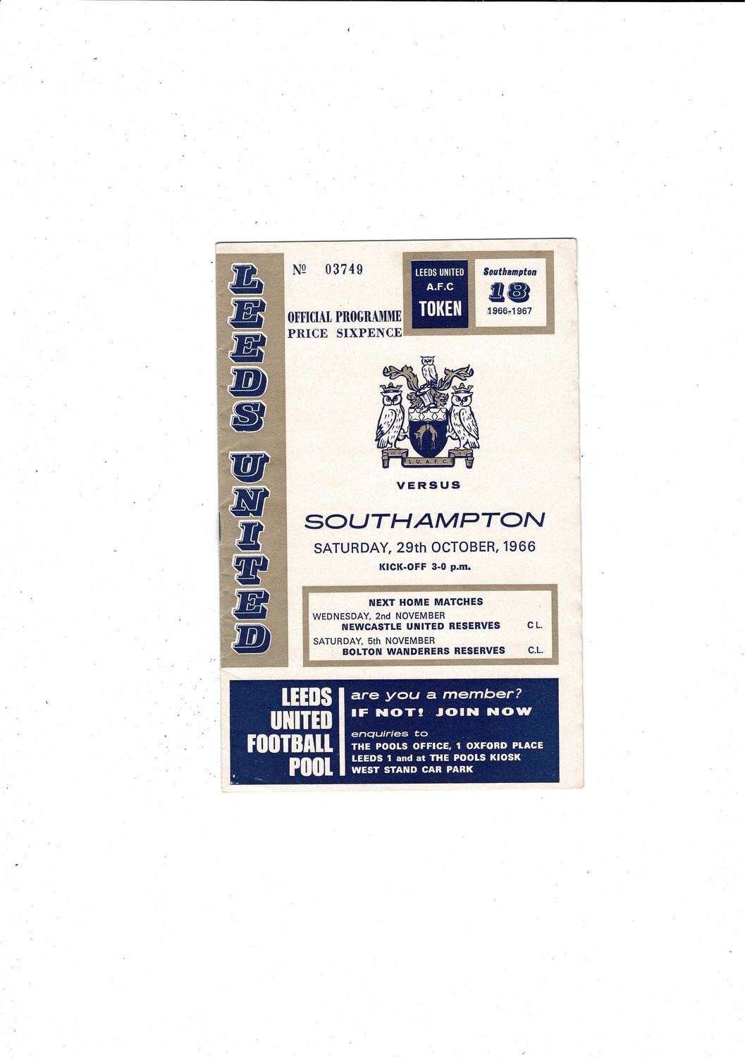 1966/67 Leeds United v Southampton Football Programme
