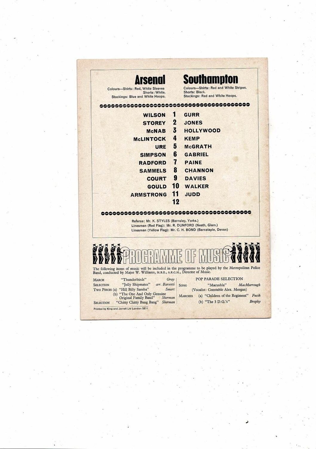 1968/69 Arsenal v Southampton Football Programme