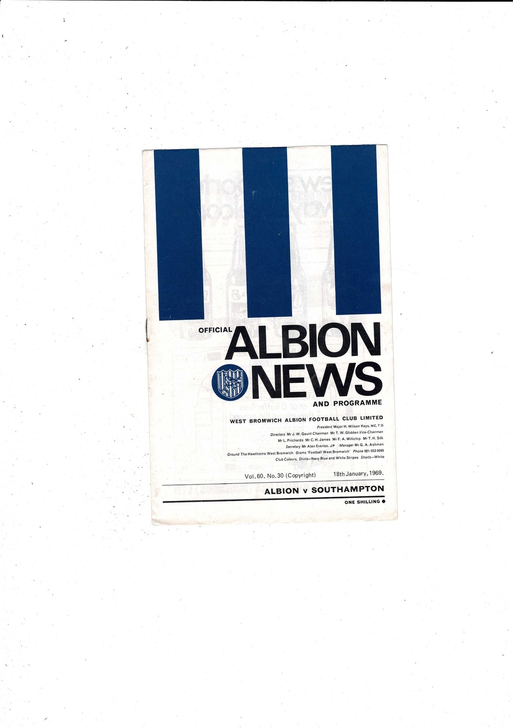 1968/69 West Bromwich Albion v Southampton Football Programme