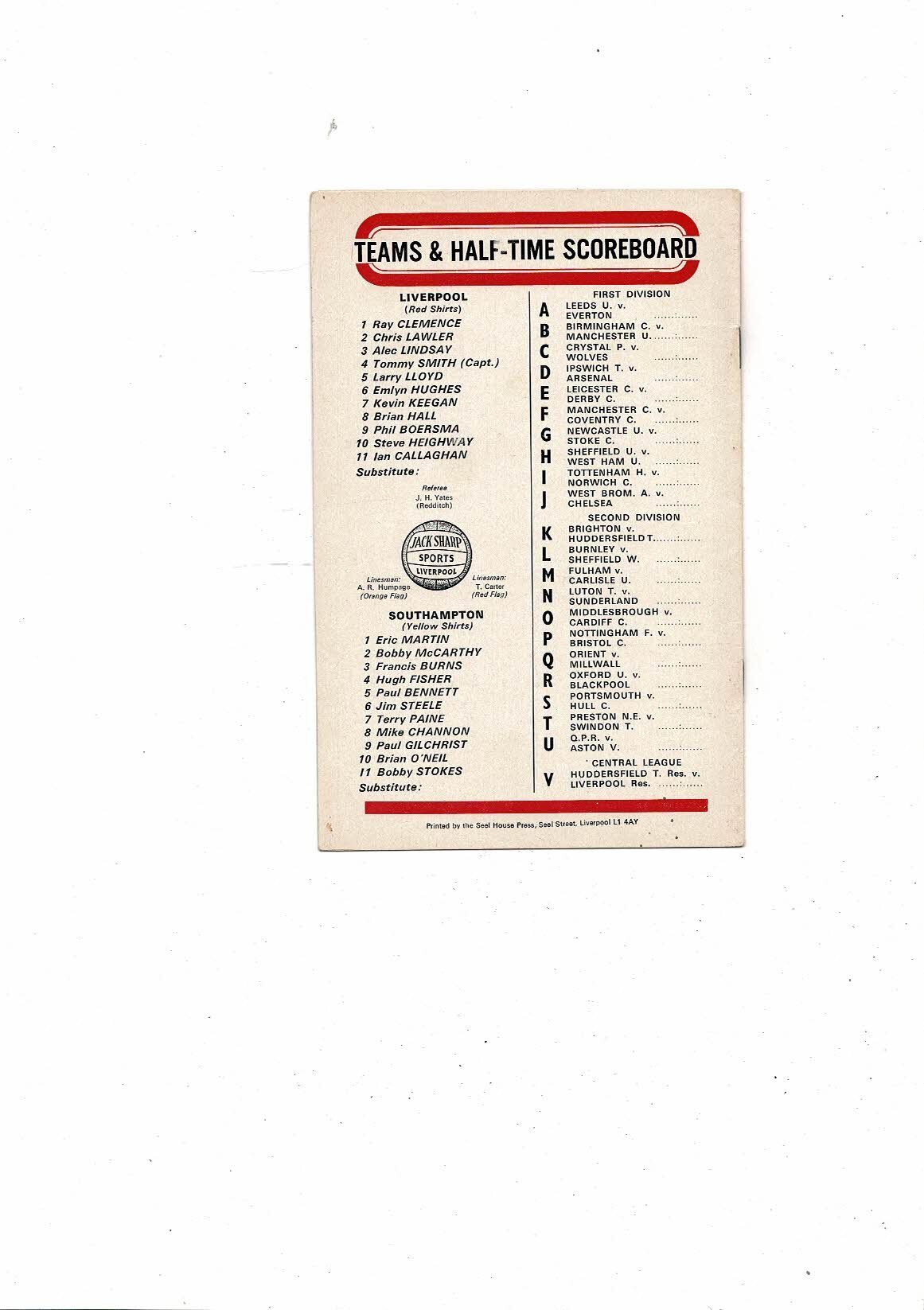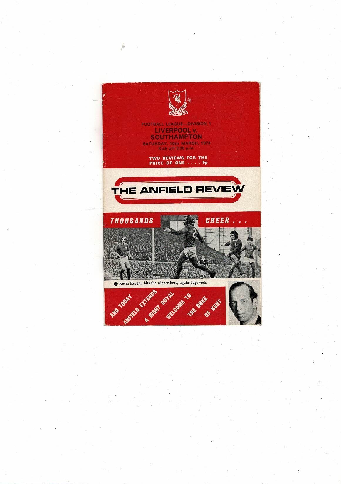 1972/73 Liverpool v Southampton Football Programme