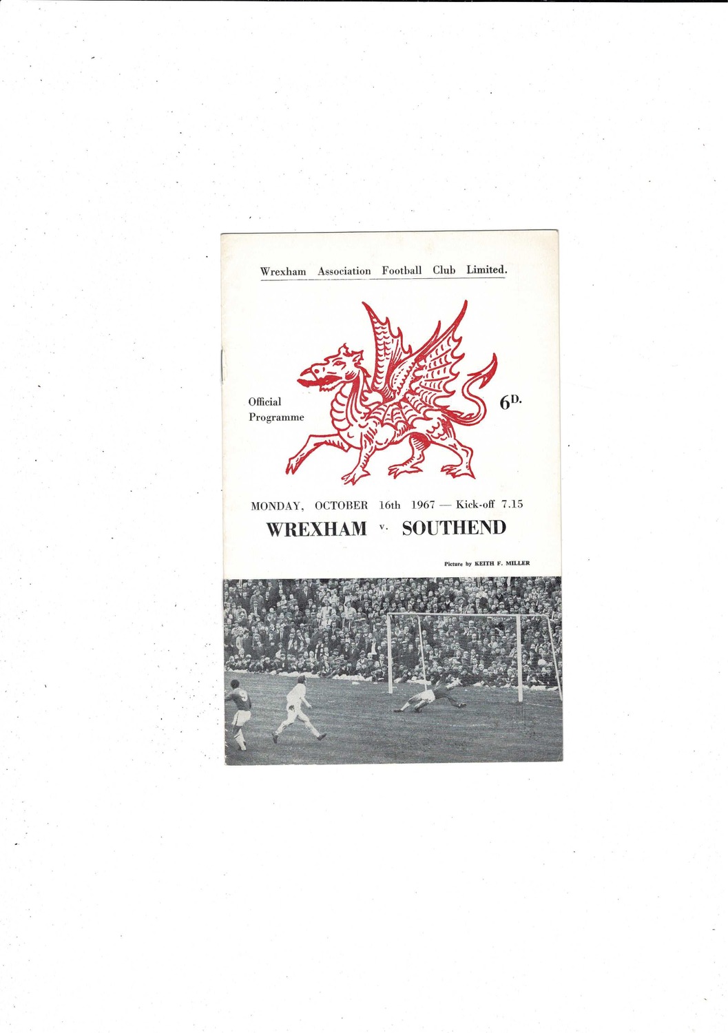 1967/68 Wrexham v Southend United Football Programme