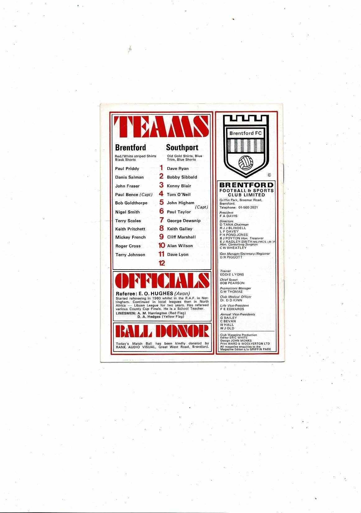 1976/77 Brentford v Southport Football Programme