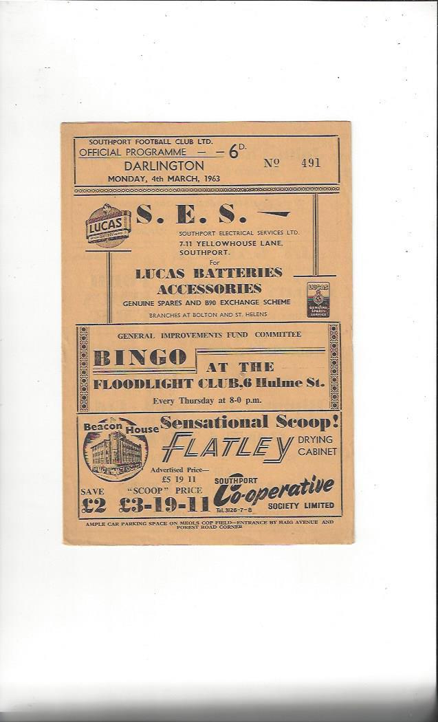 1962/63 Southport v Darlington Football Programme