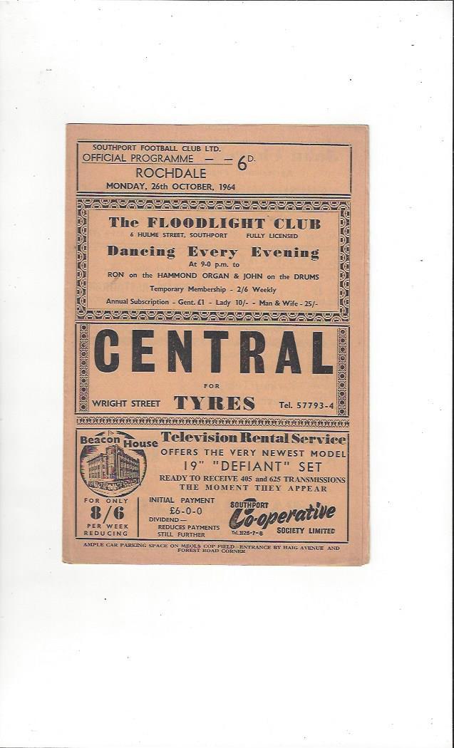 1964/65 Southport v Rochdale Football Programme